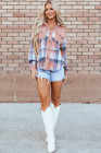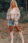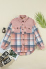 Veste courte en velours côtelé à carreaux rose clair avec poche poitrine en patchwork