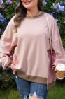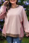 Sweat-shirt ample rose clair à blocs de couleurs et patchwork gaufré avec coutures apparentes