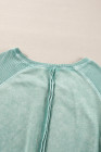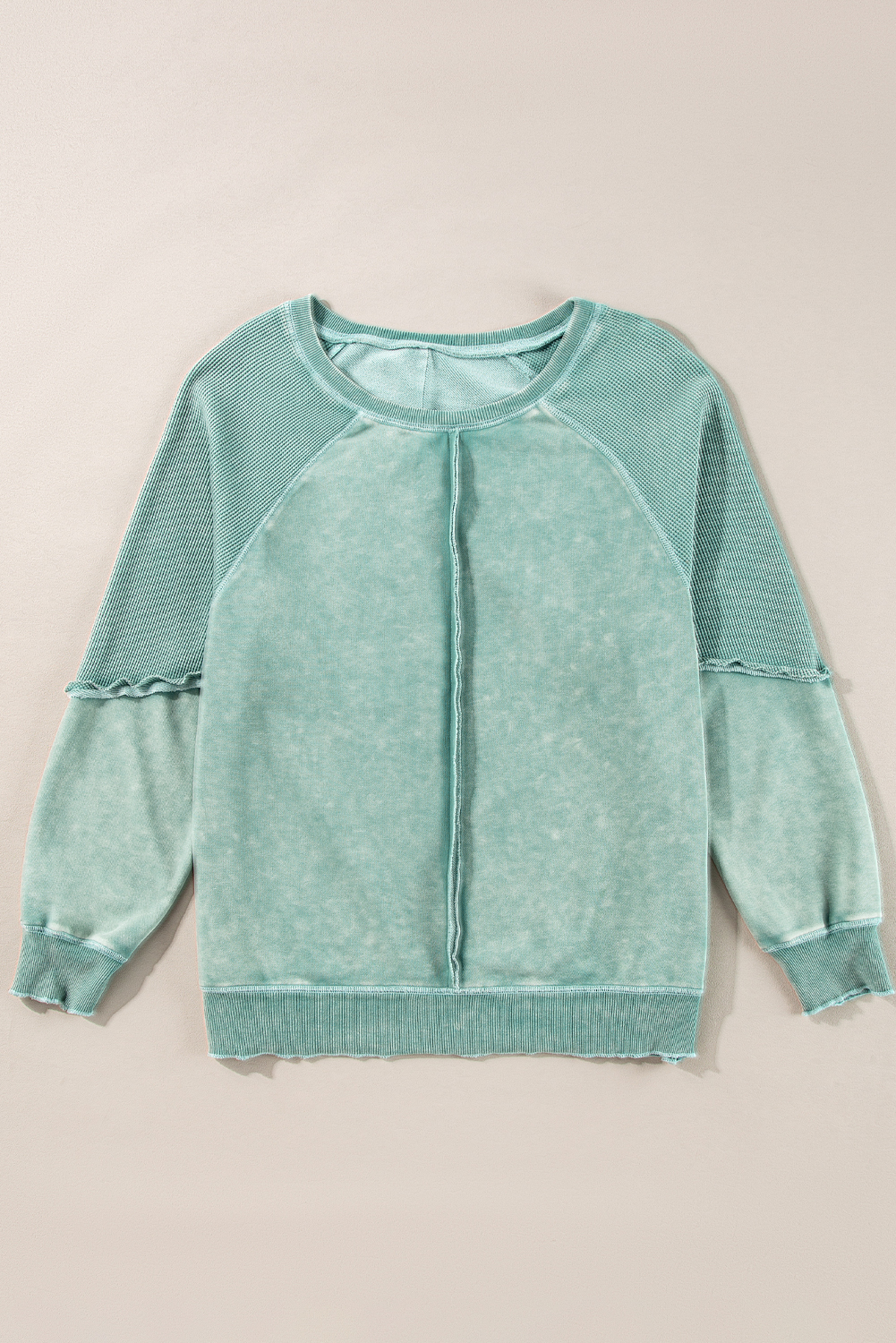 Sweat-shirt à manches raglan en tricot gaufré uni bleu minéral