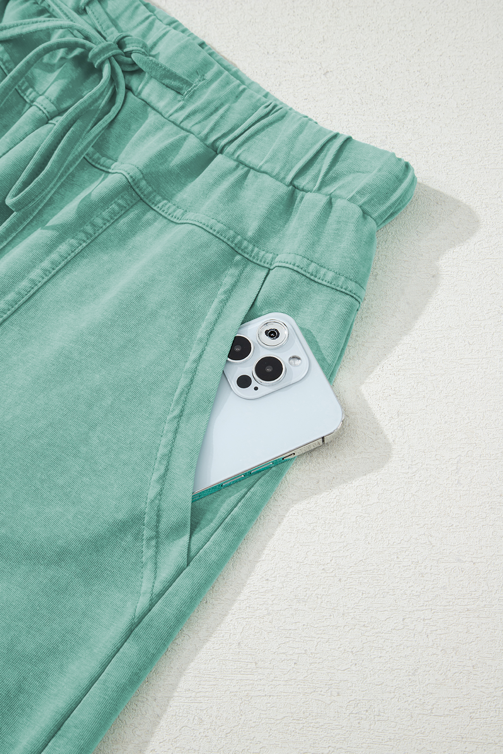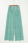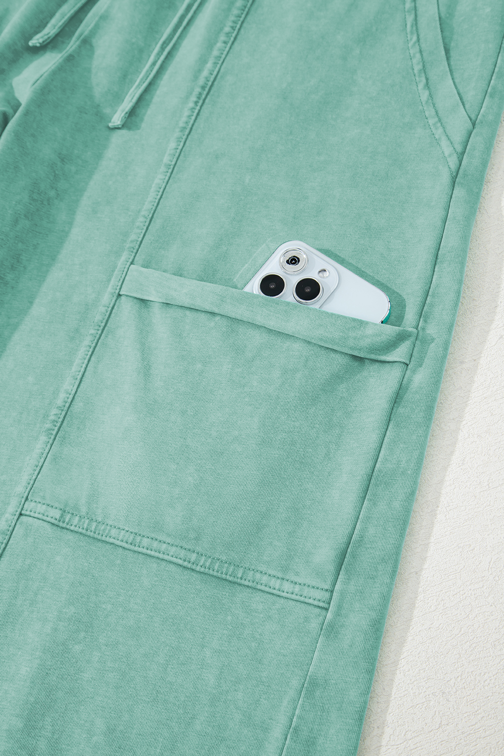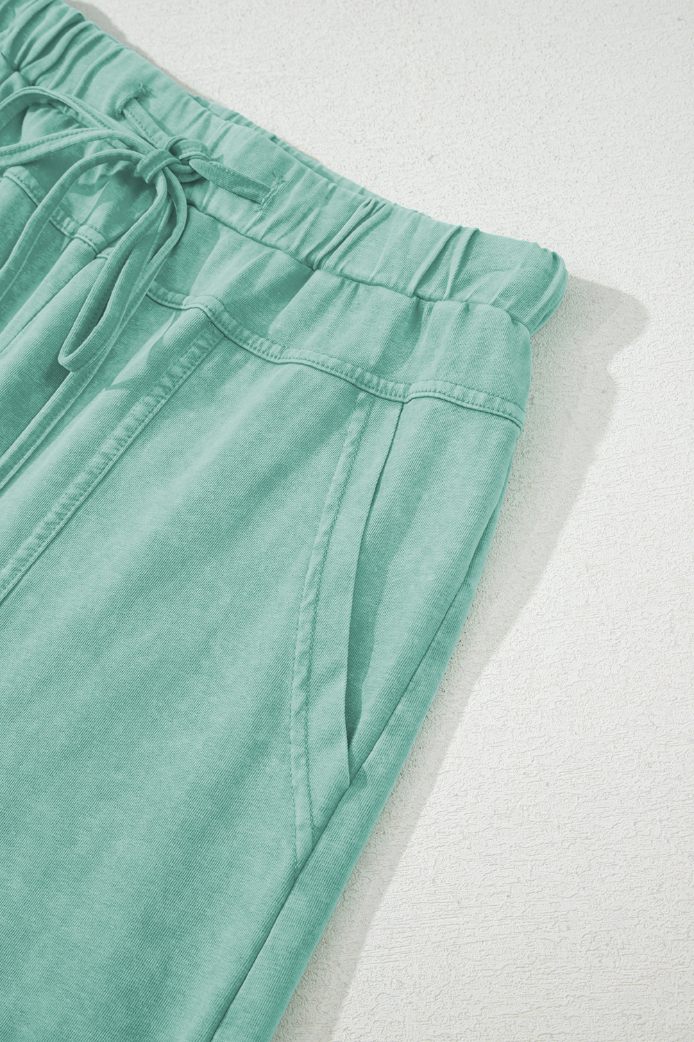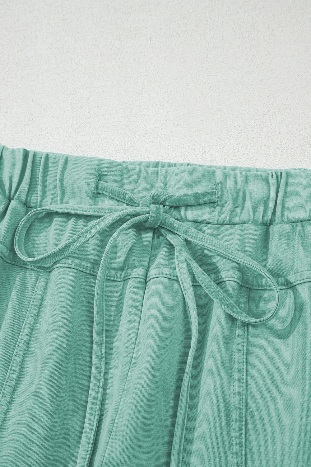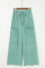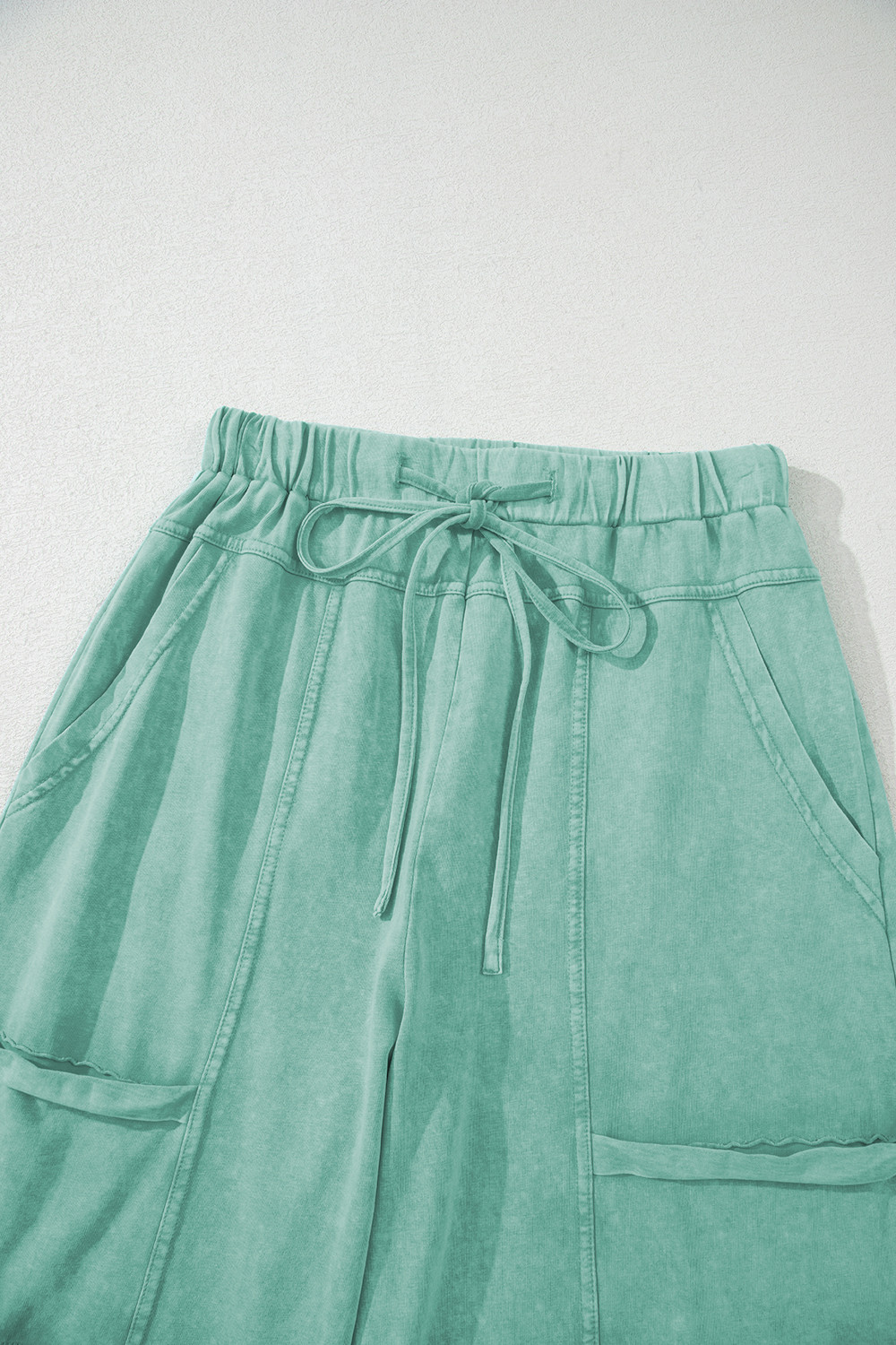 Pantalon cargo vert menthe délavé minéral, coutures apparentes, cordon de serrage, taille élastique, jambe large
