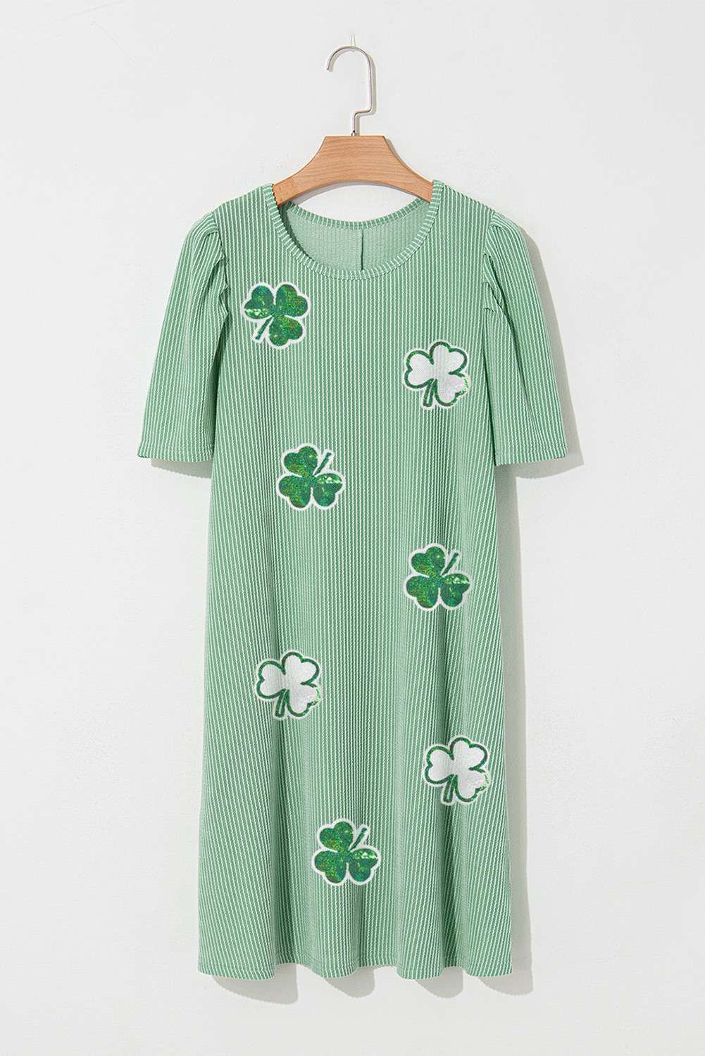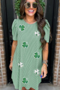 Robe t-shirt à manches bouffantes et imprimé trèfle vert menthe