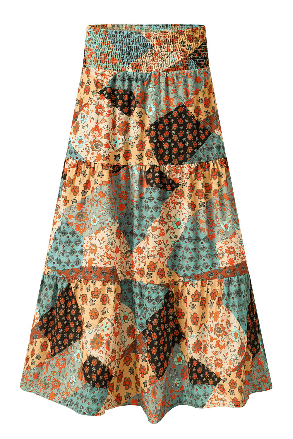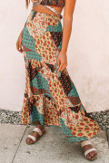 Jupe longue maxi à imprimé bohème multicolore et taille nouée