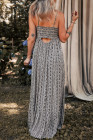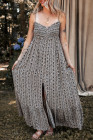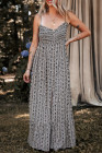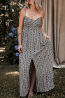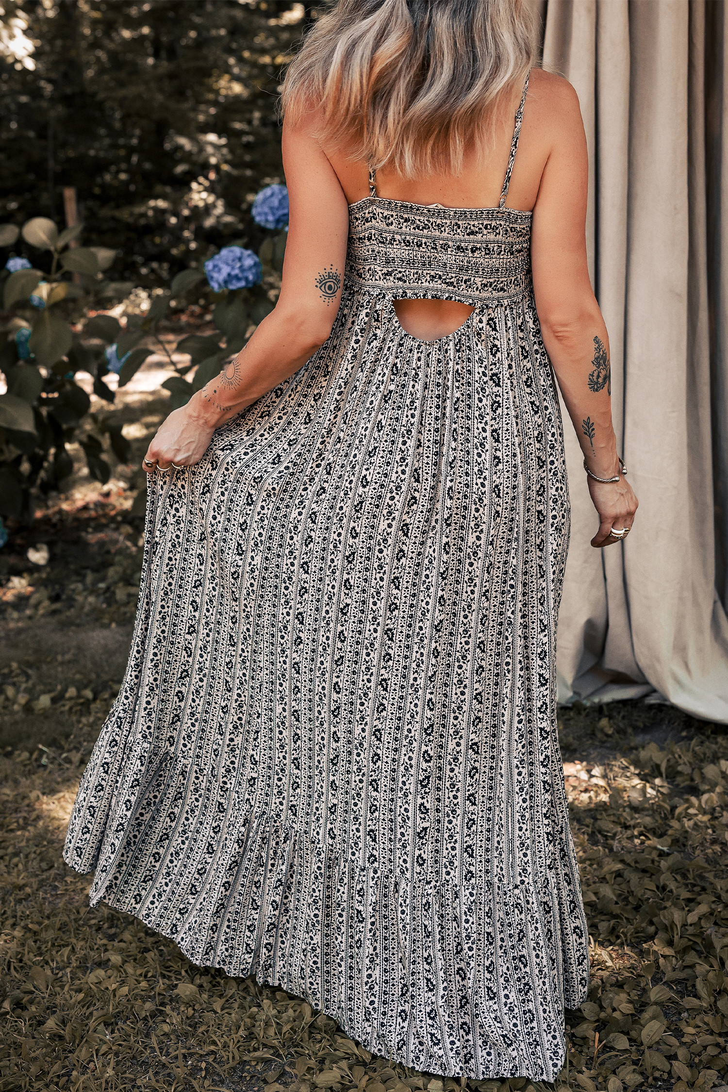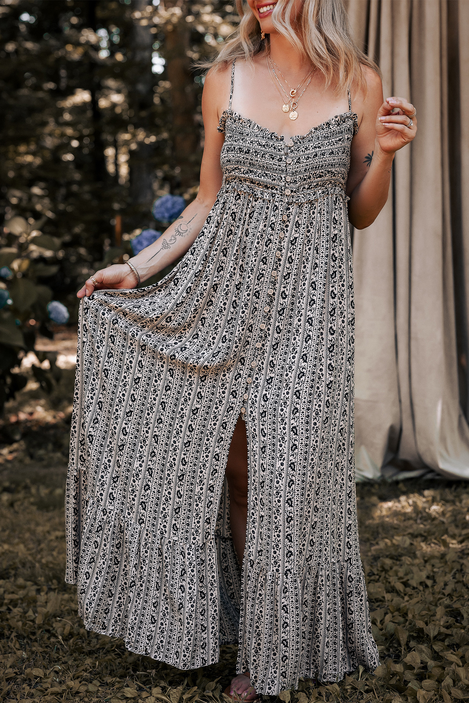 Robe maxi bohème à rayures et imprimé floral, boutonnée sur le devant et fendue