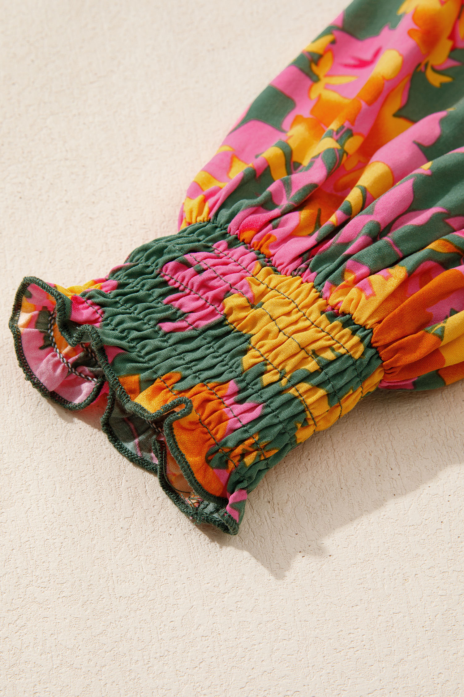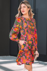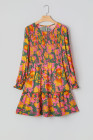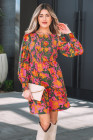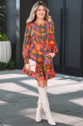 Robe courte à volants et manches longues à imprimé floral multicolore