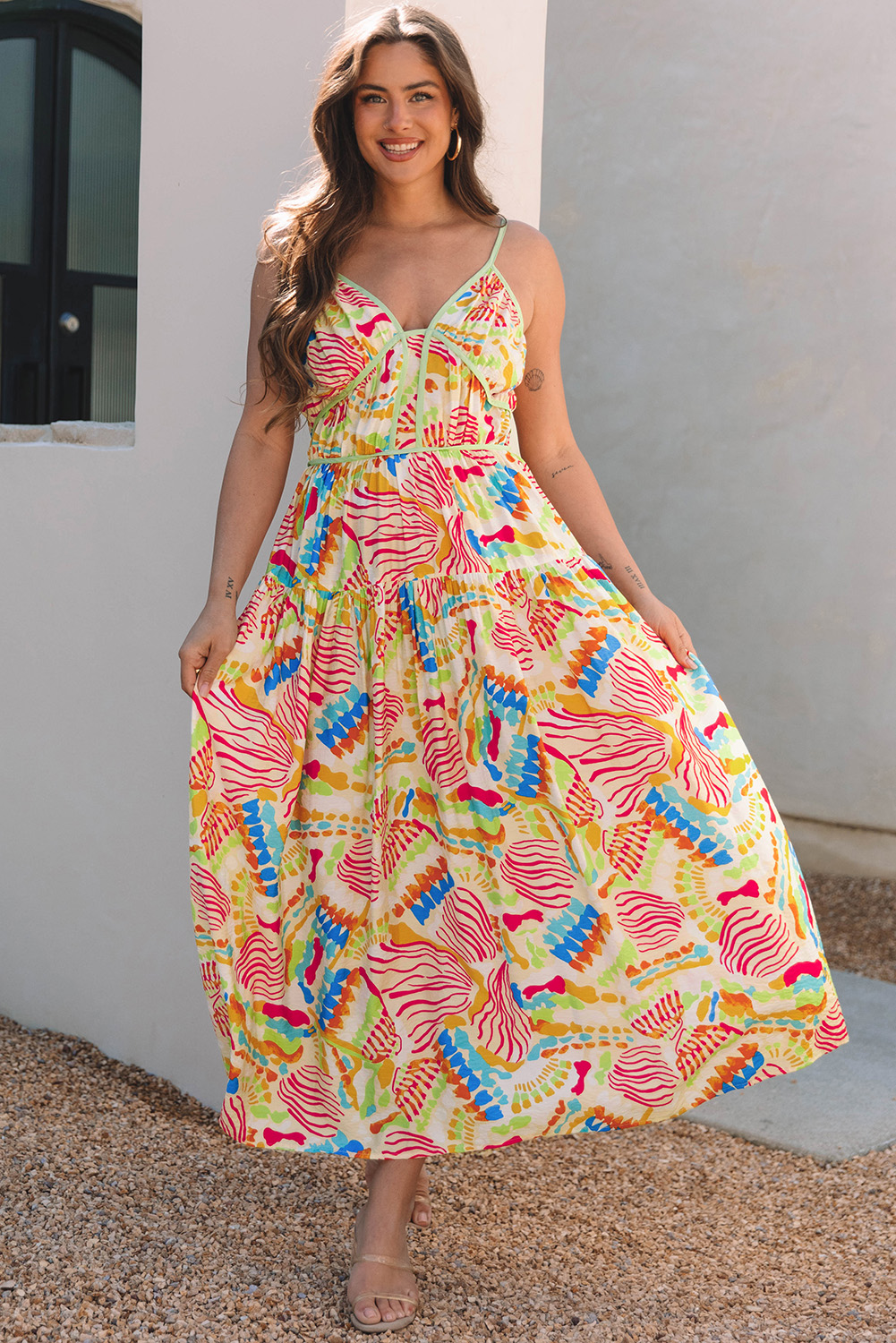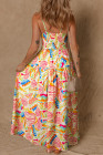 Robe longue orange à imprimé abstrait et bretelles spaghetti