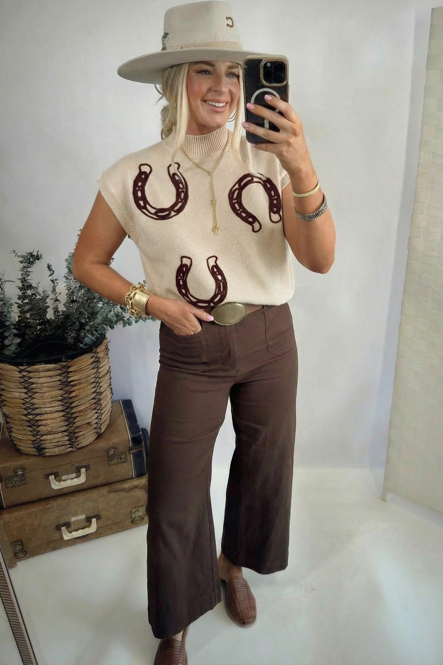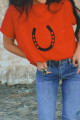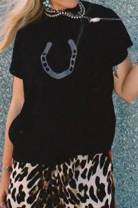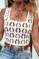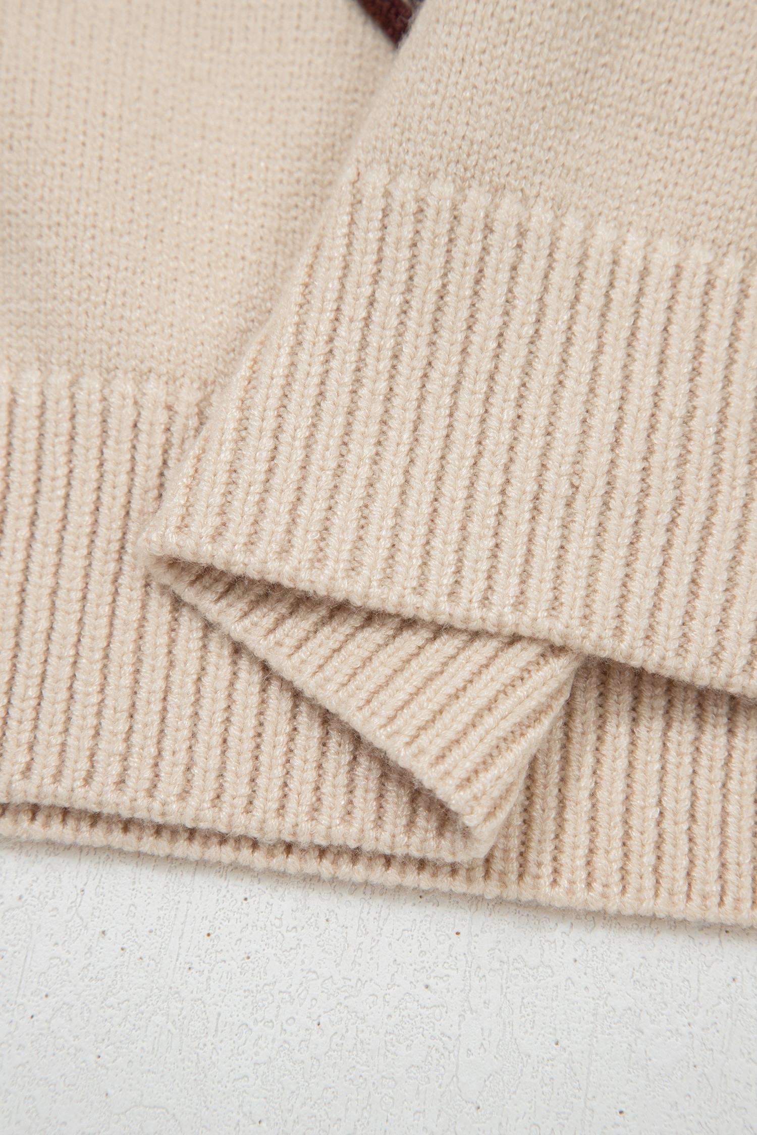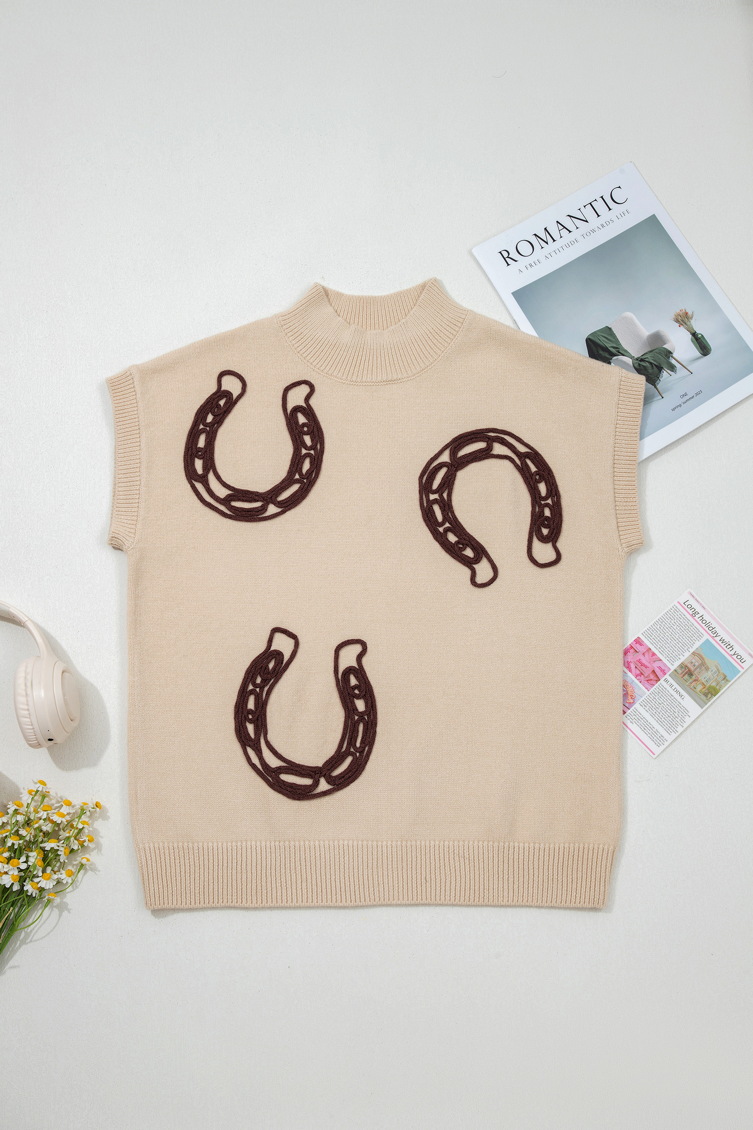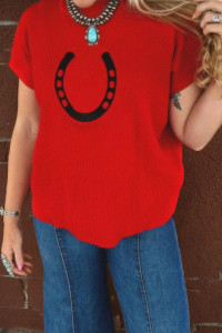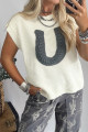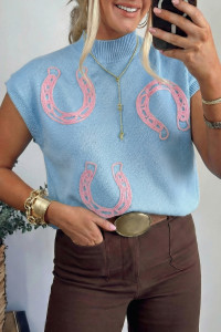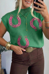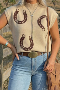 Pull à manches courtes et col montant en parchemin à motif fers à cheval côtelé