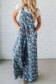 Salopette large en denim à imprimé patchwork floral bleu paon