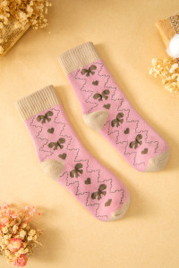 Chaussettes d'hiver roses à motifs géométriques en forme de cœur et nœud, bord-côtes