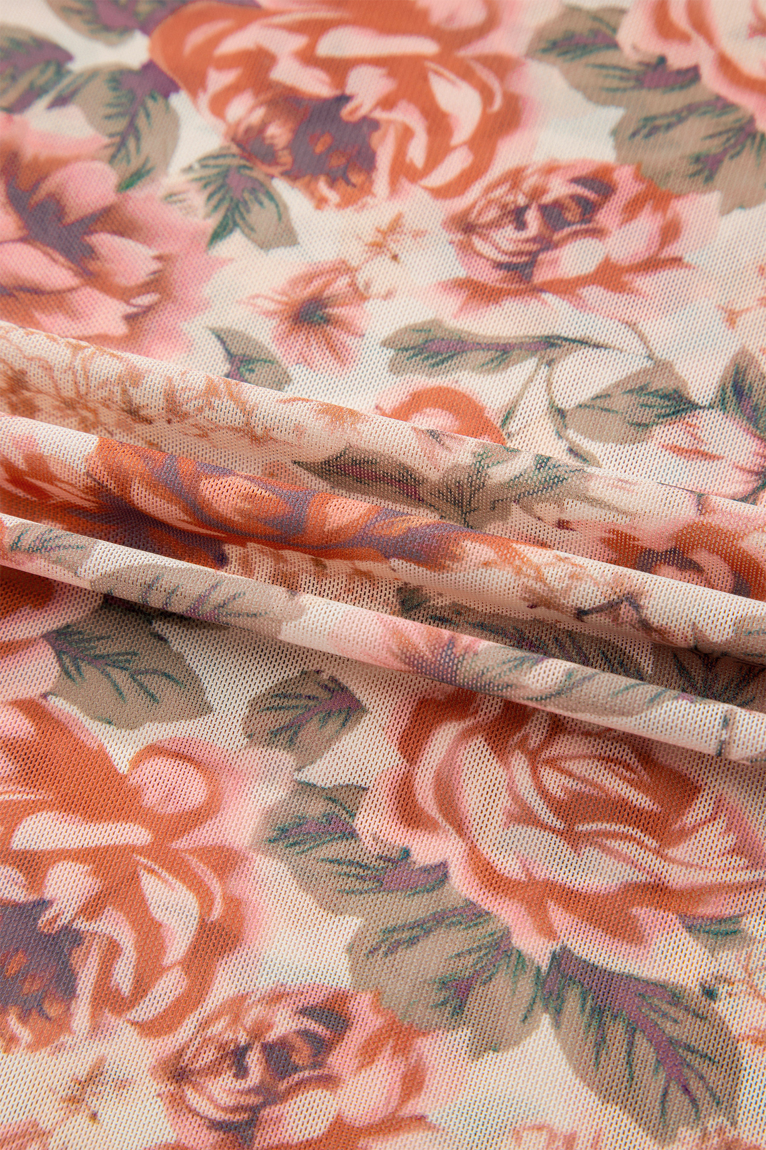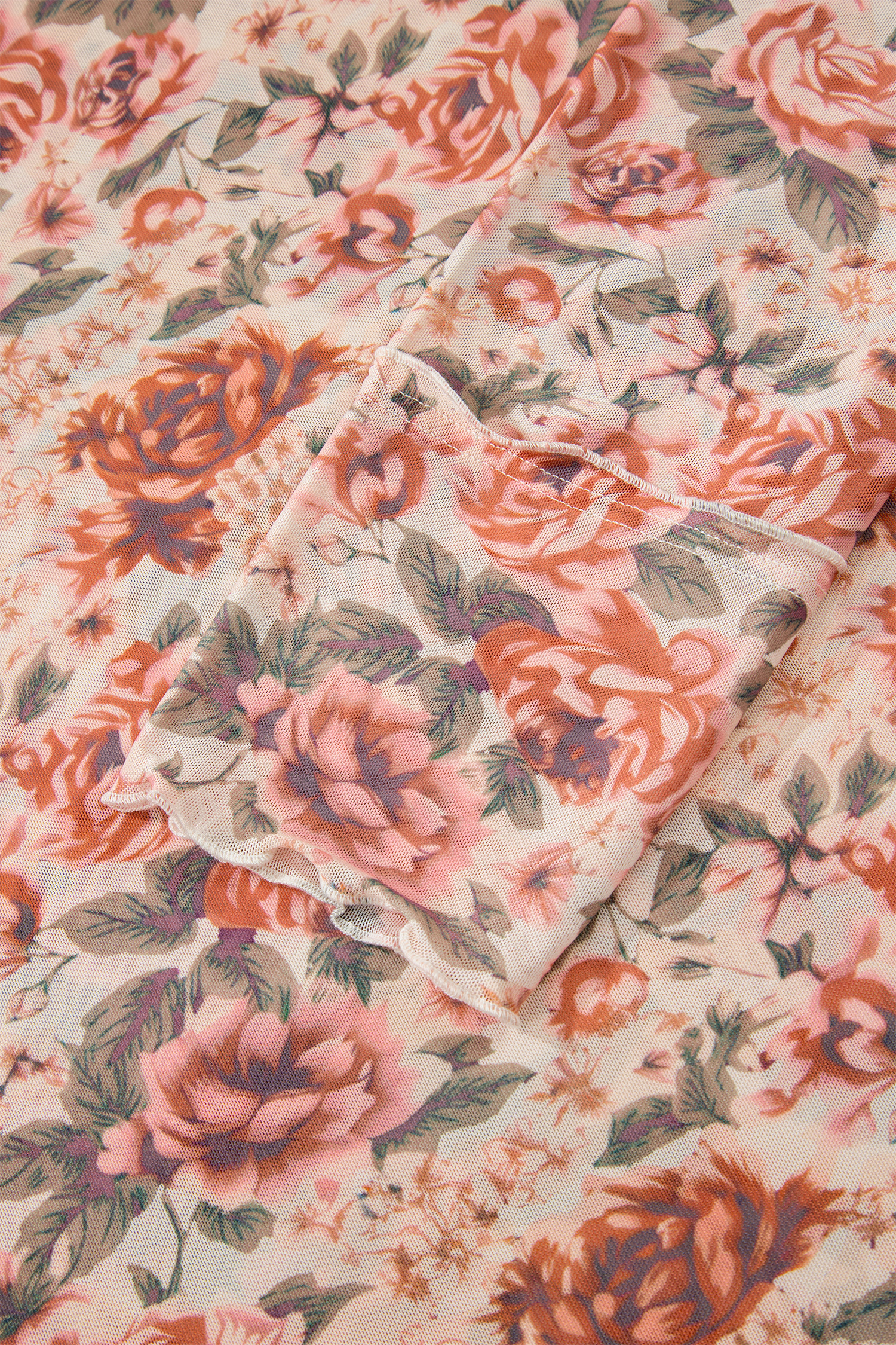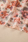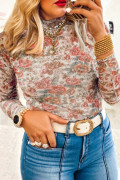 Haut rose grande taille à fleurs, col montant et manches longues, coupe ajustée