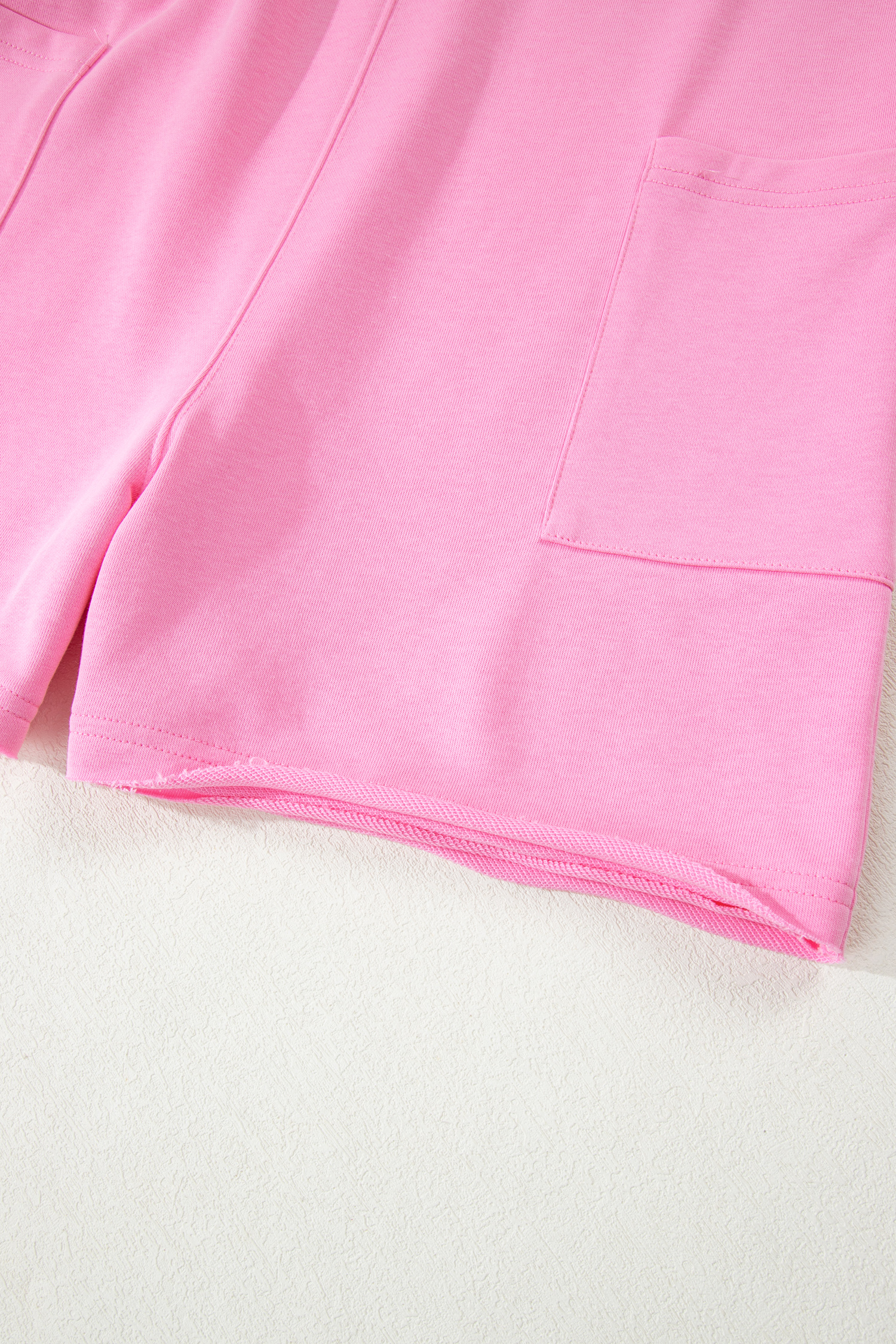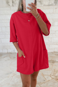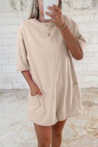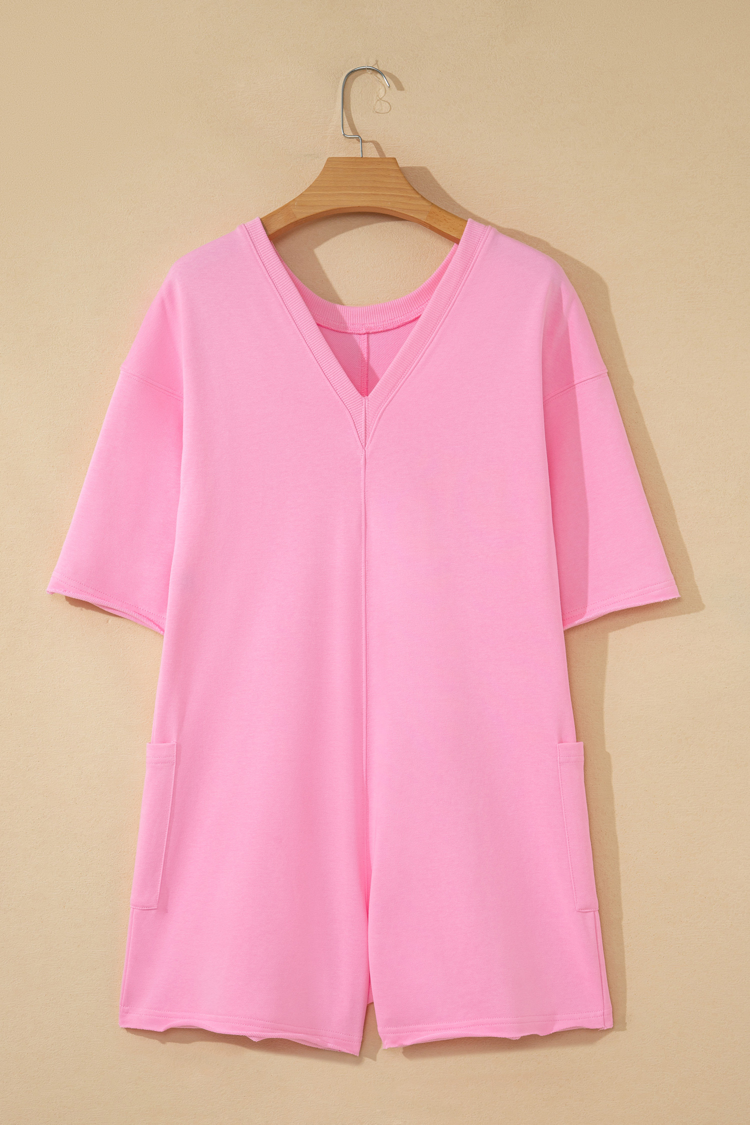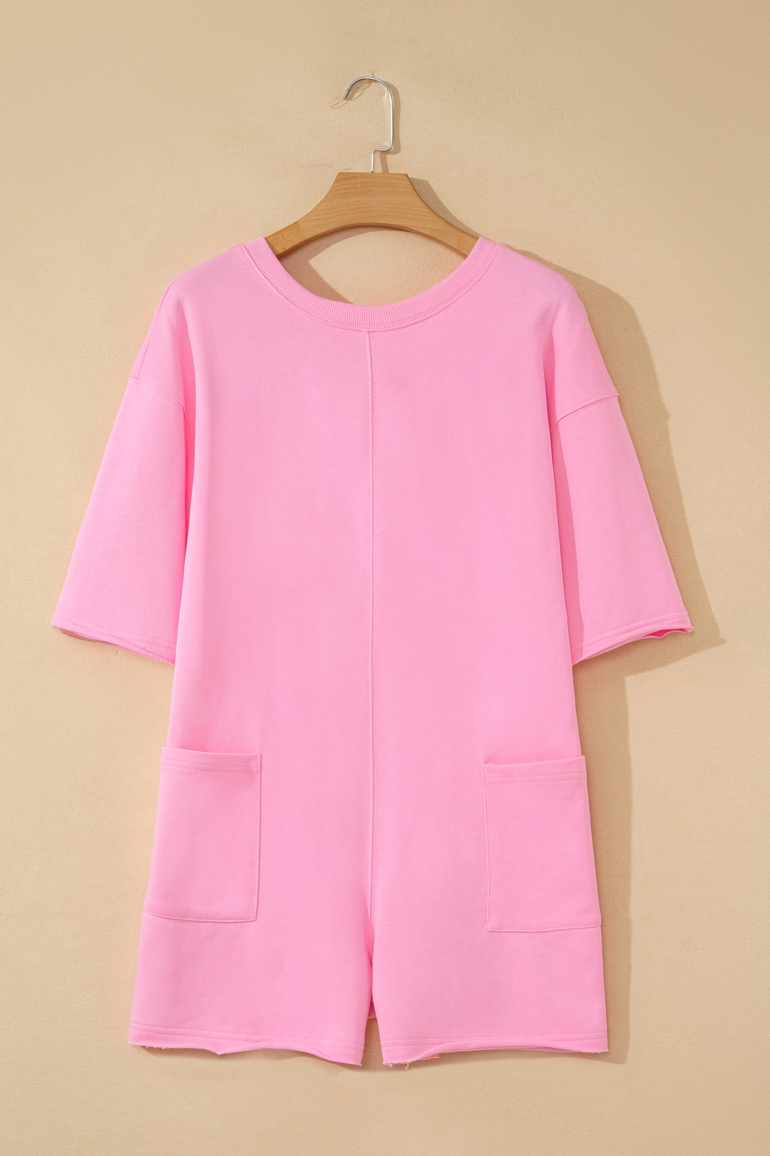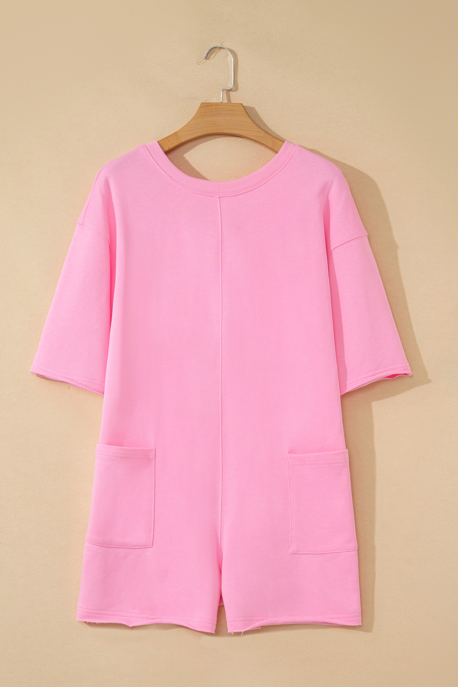 Combinaison ample rose unie à bords francs, manches courtes et poches