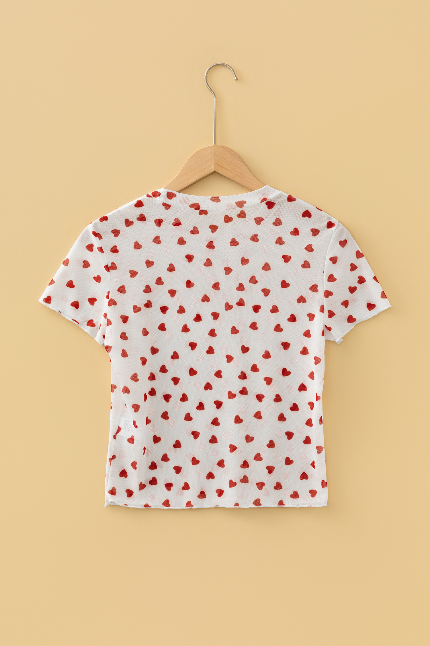 Haut à manches courtes en maille à imprimé cœur rouge intégral