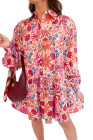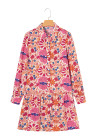 Robe courte à manches longues imprimée de fleurs d'automne rouges