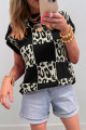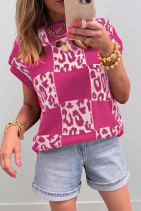 Pull en maille à manches courtes à carreaux léopard rouge