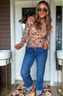Haut à manches longues en maille à imprimé floral et bordure en laitue rouge