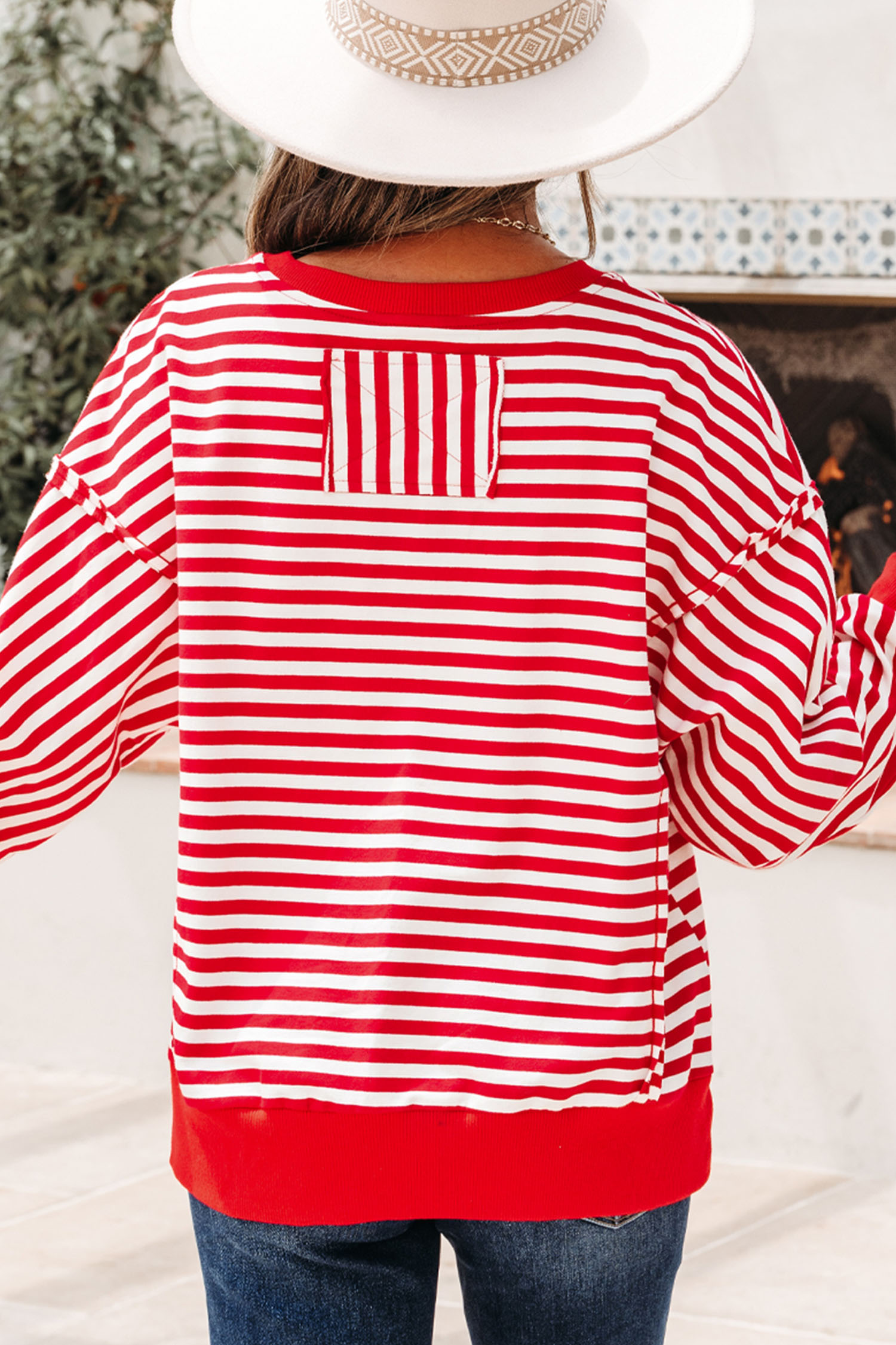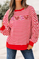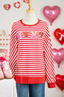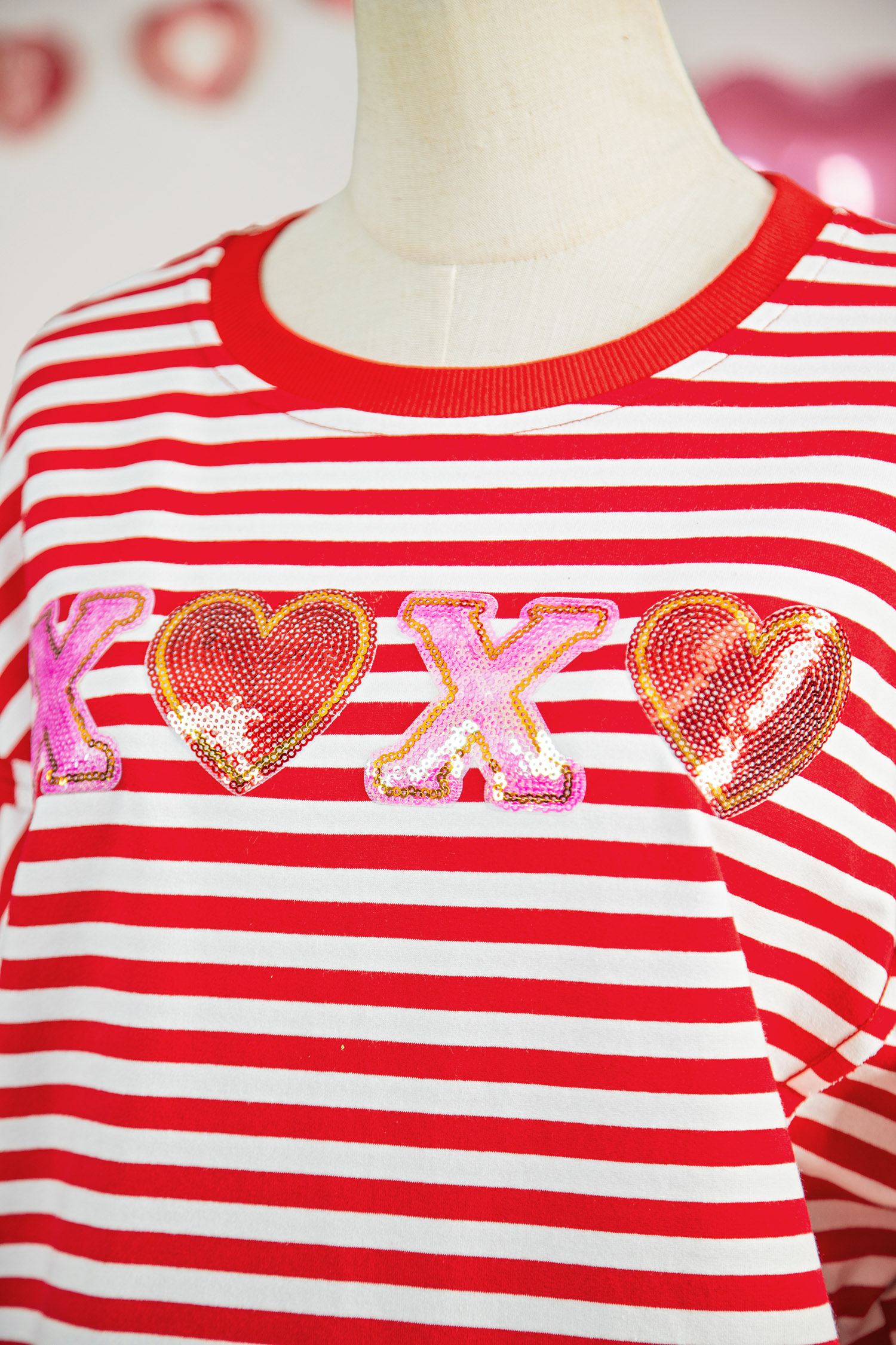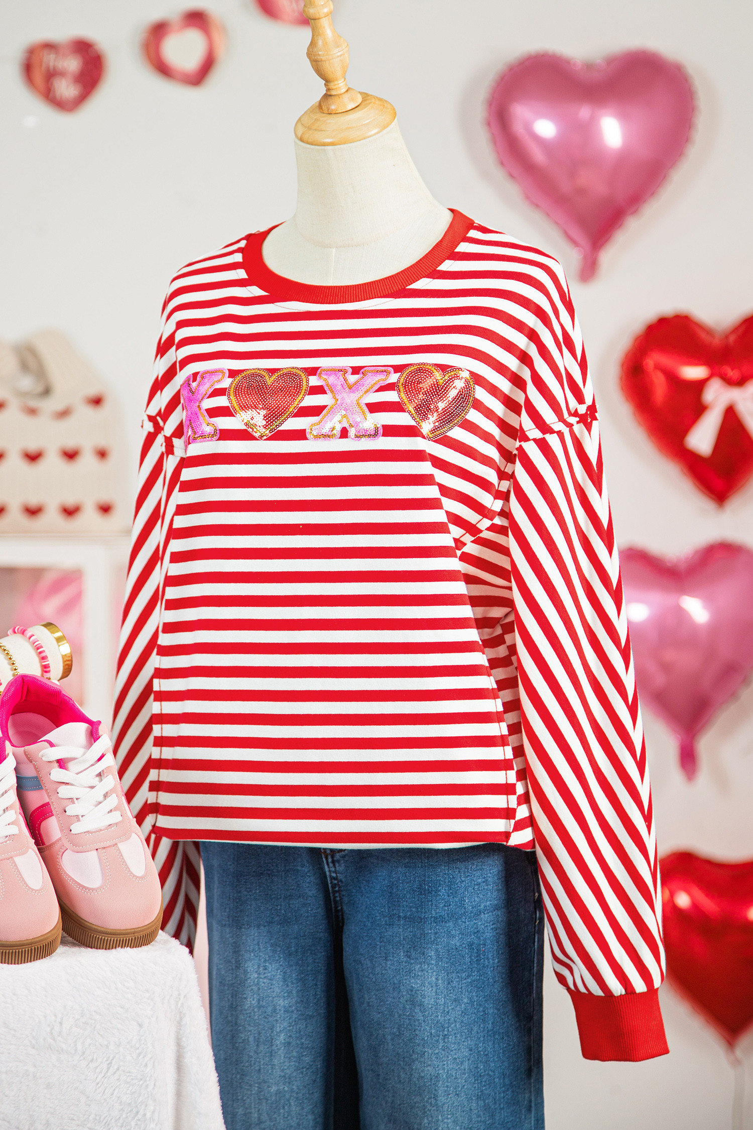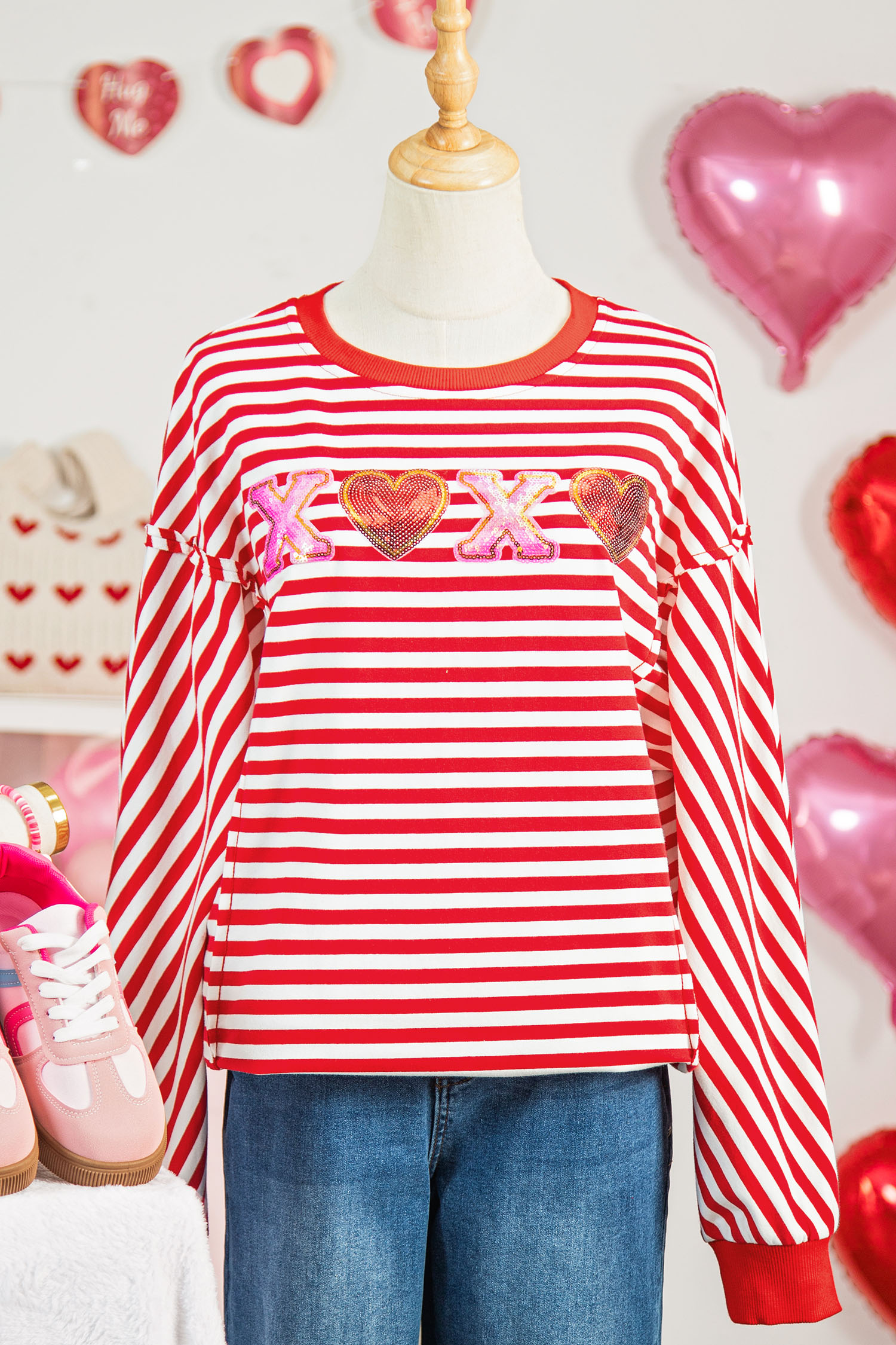 Haut à manches longues rayé rouge avec empiècement cœur à sequins XOXO pour la Saint-Valentin