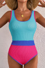 Maillot de bain une pièce en patchwork de couleurs texturées rouge rose