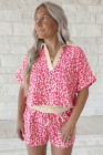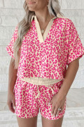 Ensemble short 2 pièces imprimé léopard à col en V rose
