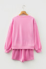 Sachet rose girly nœud brodé détail manches bouffantes pull ensemble 2 pièces short