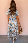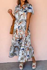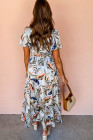 Robe longue à imprimé floral avec cordon de serrage et col en V, taille haute