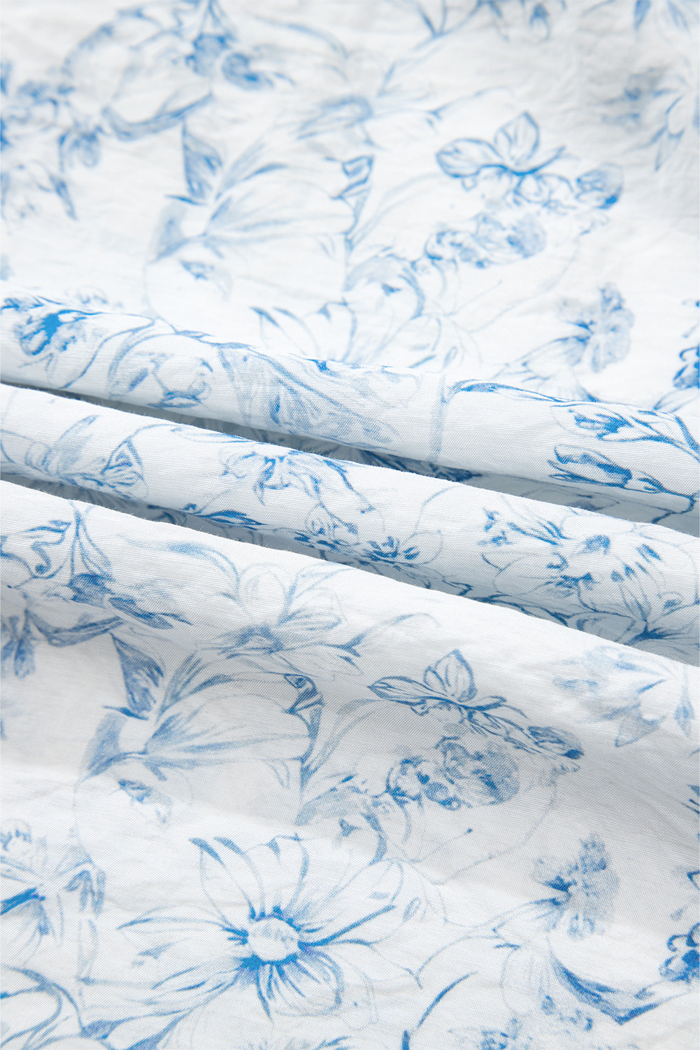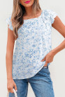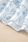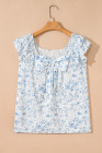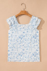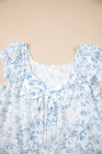 Chemisier bleu ciel à volants et manches courtes, col carré et nœud dans le dos