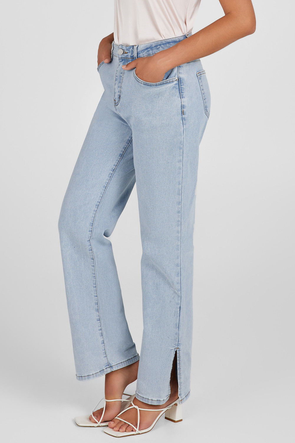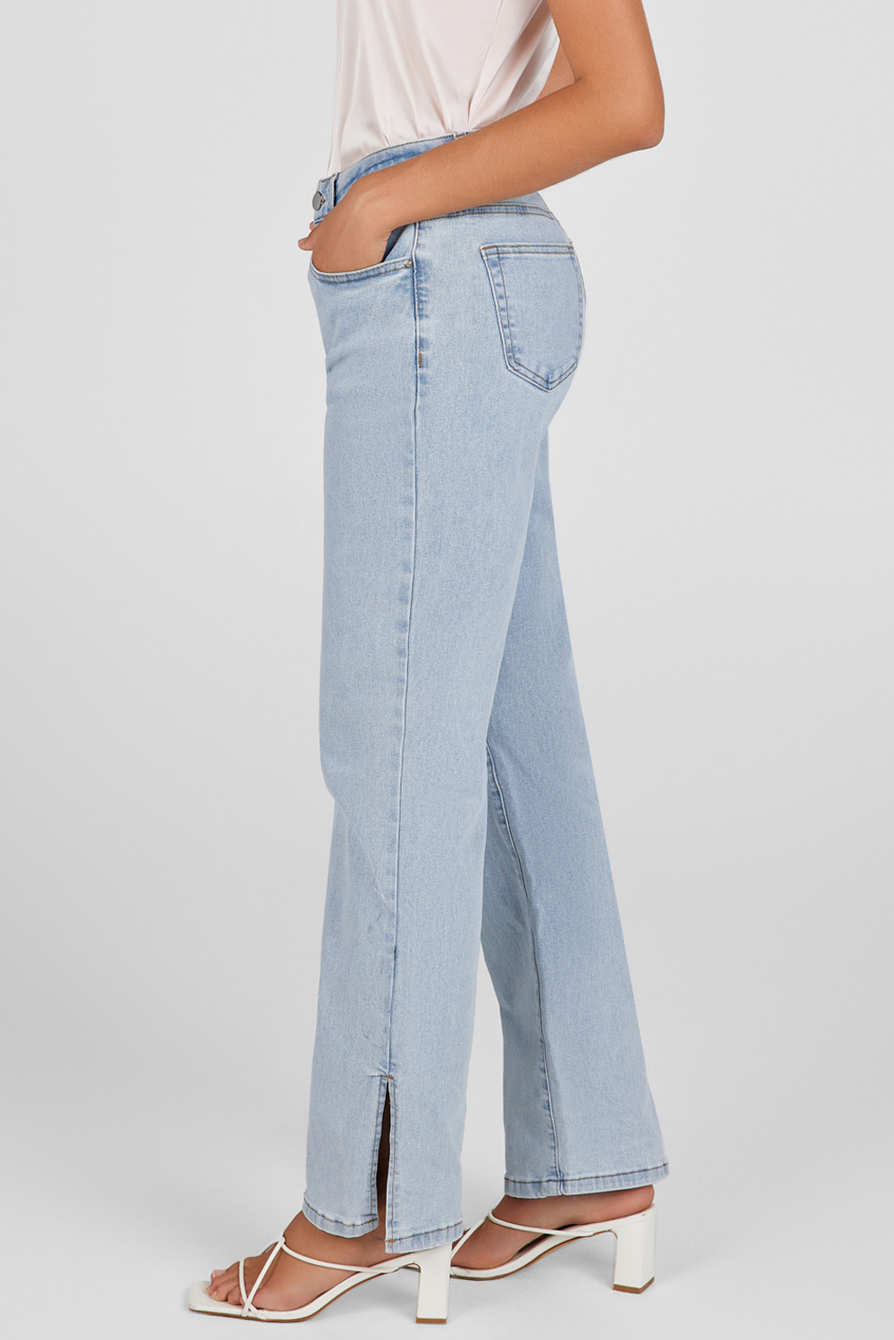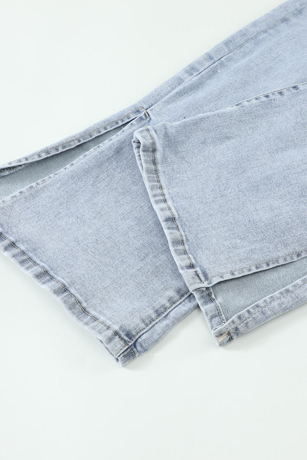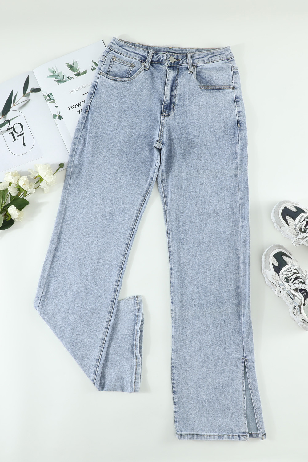 Jean évasé bleu ciel taille haute fendu à la cheville
