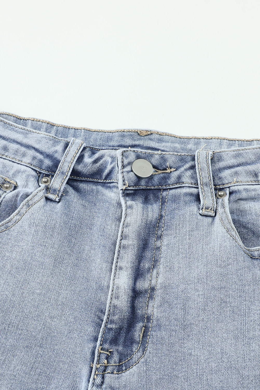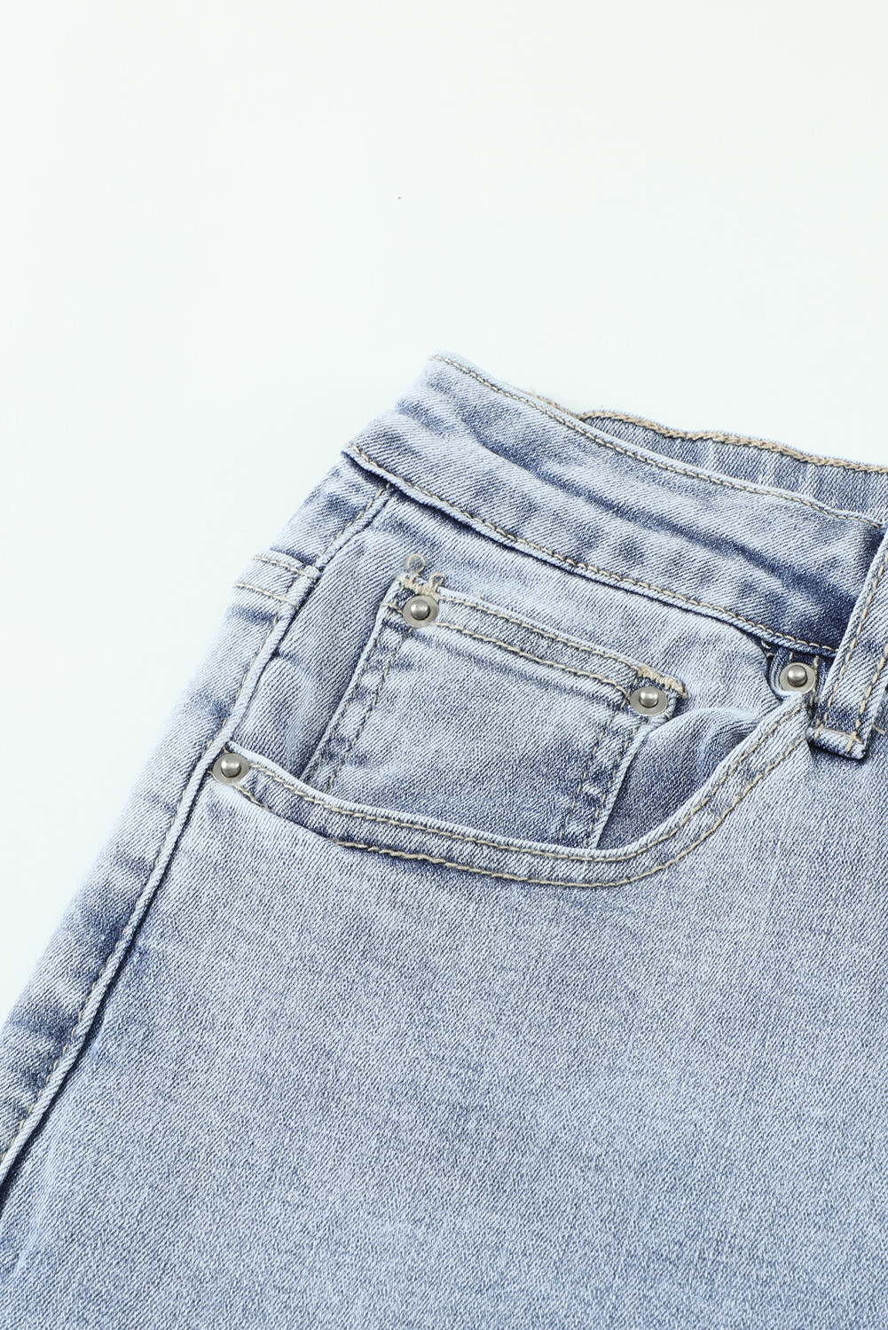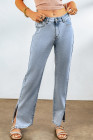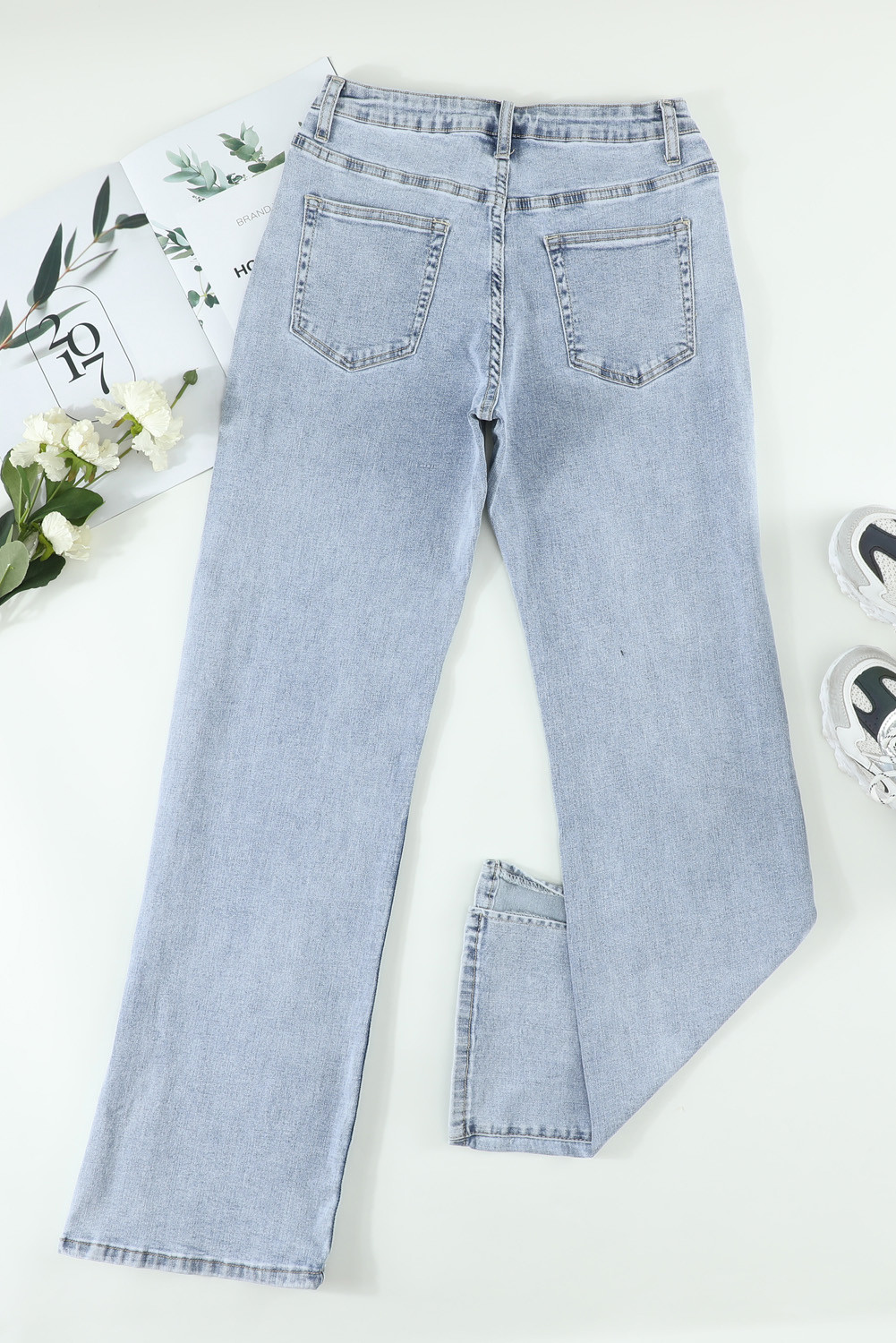 Jean évasé bleu ciel taille haute fendu à la cheville