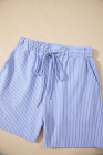 Ensemble polo à manches dolman et short à cordon de serrage à rayures bleu ciel