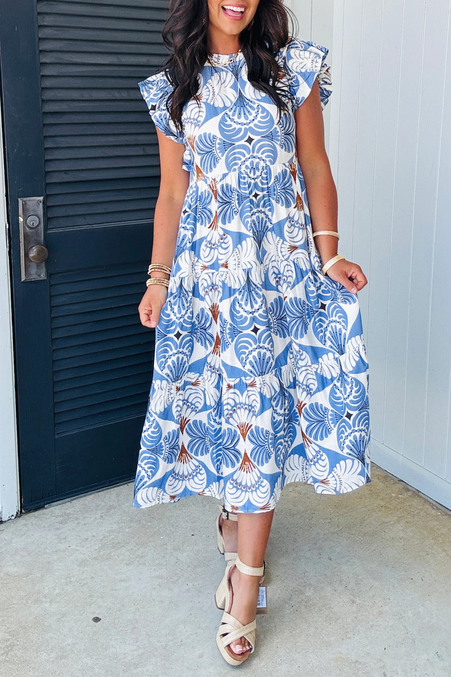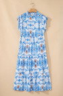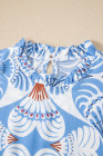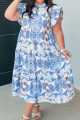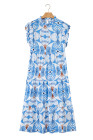 Robe longue de vacances bleu ciel à imprimé botanique tropical et manches papillon