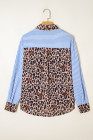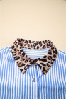 Chemise boutonnée à imprimé léopard et rayures bleu ciel pour femme