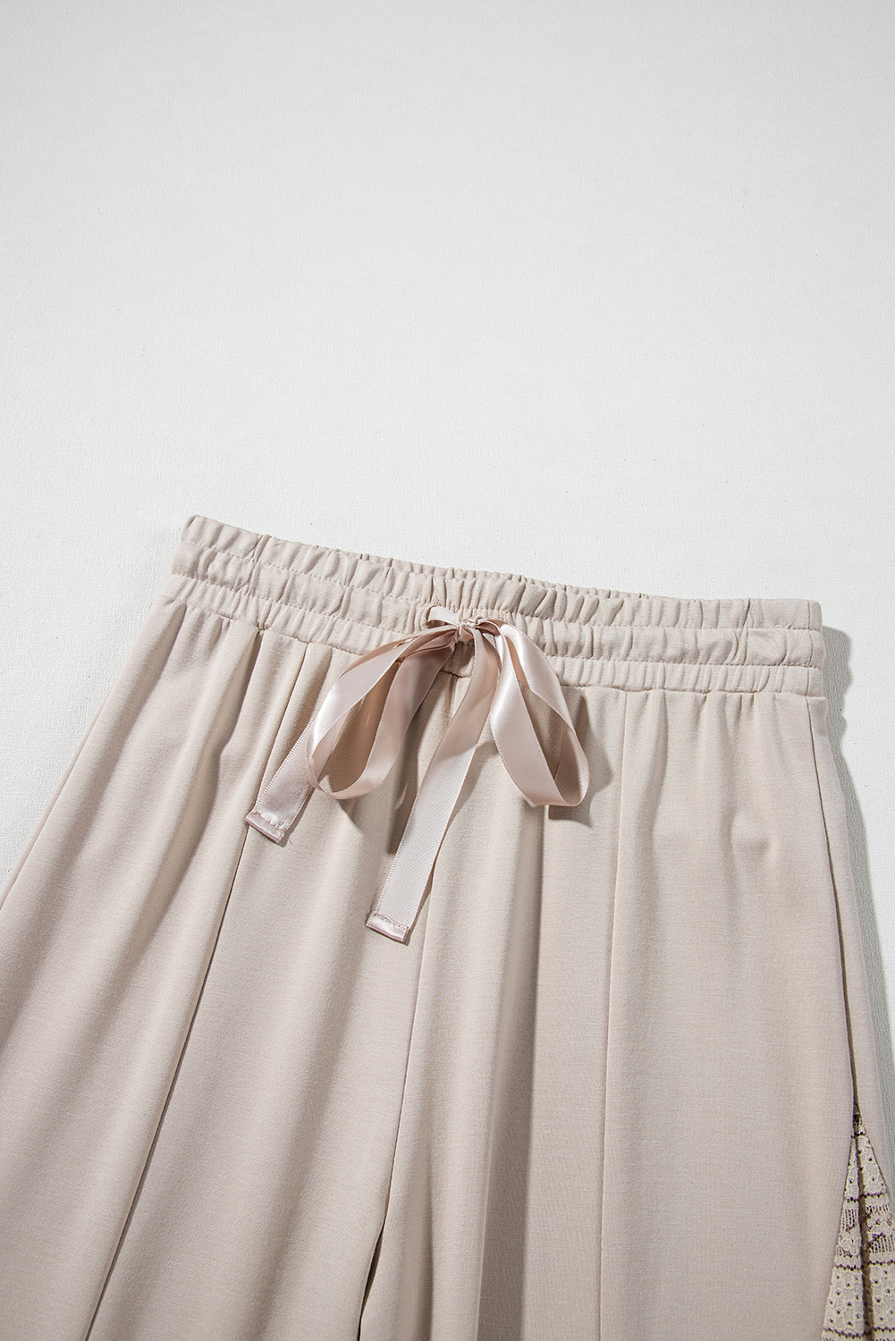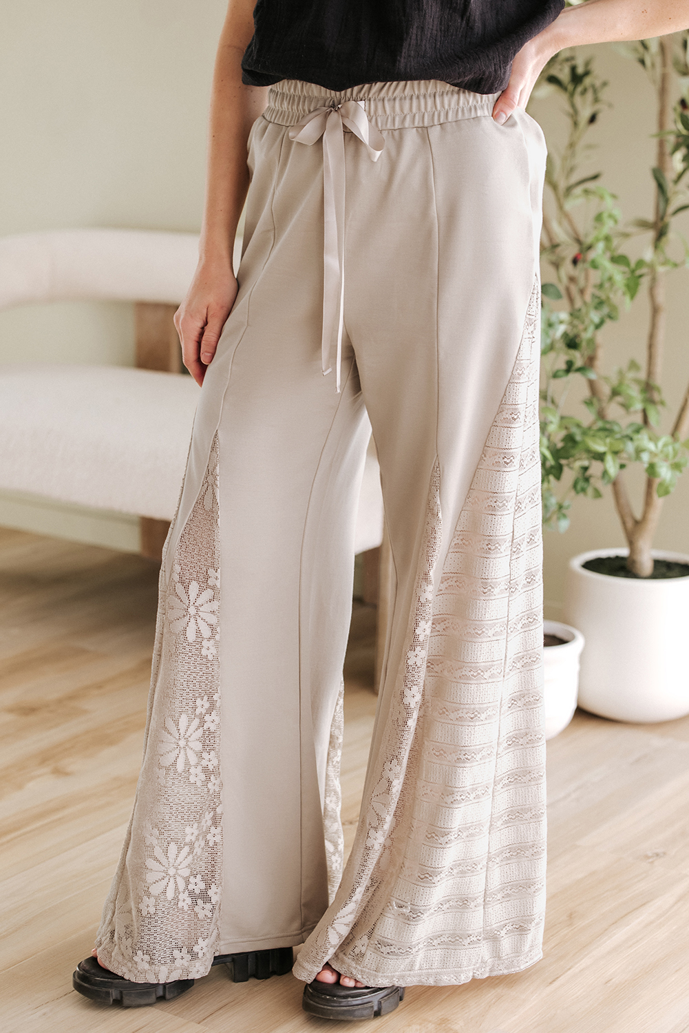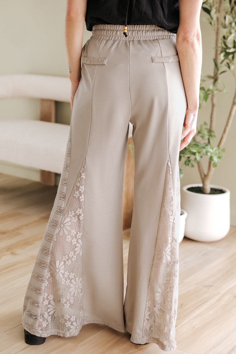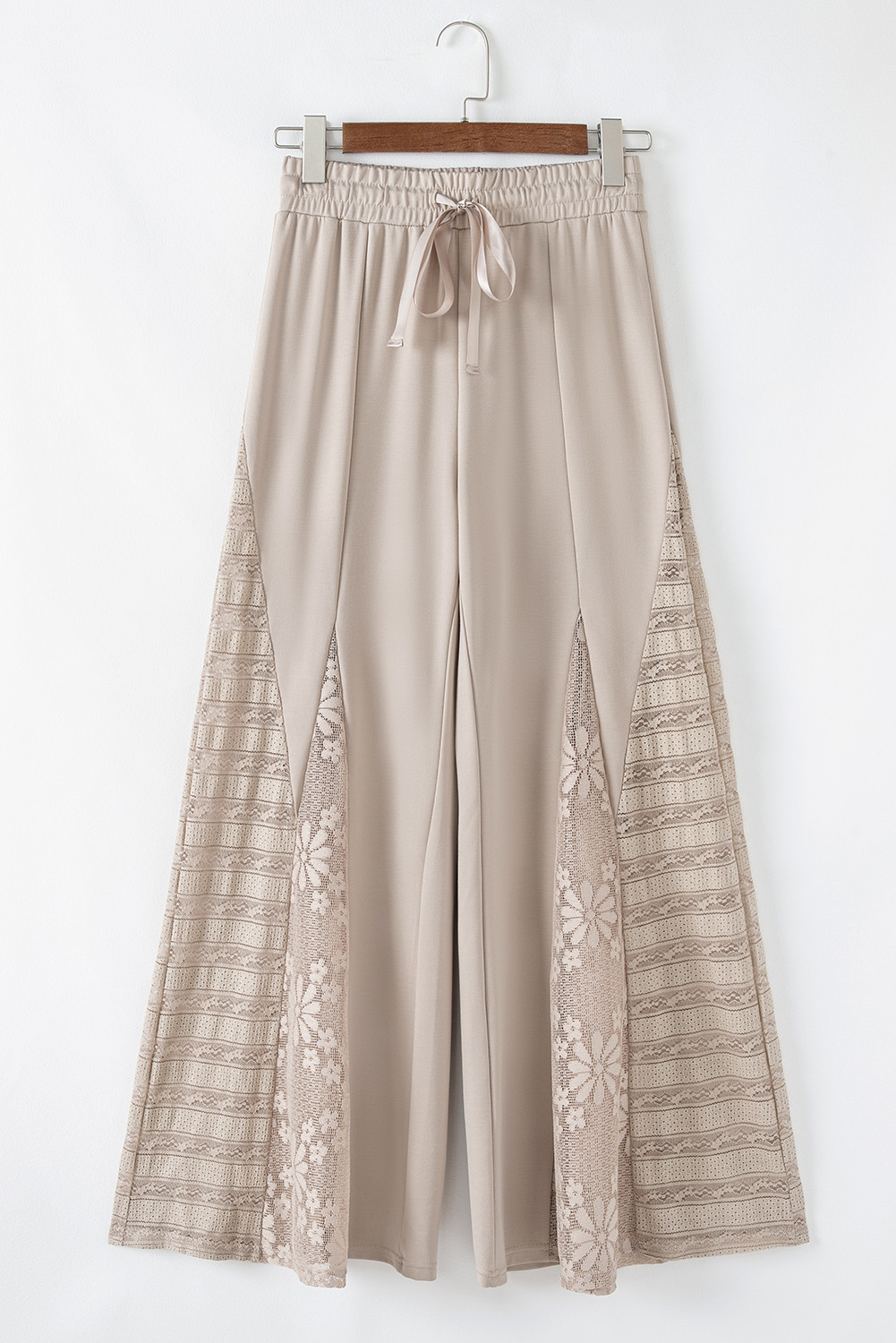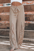 Pantalon taille haute à jambe large en patchwork de dentelle bohème gris fumé