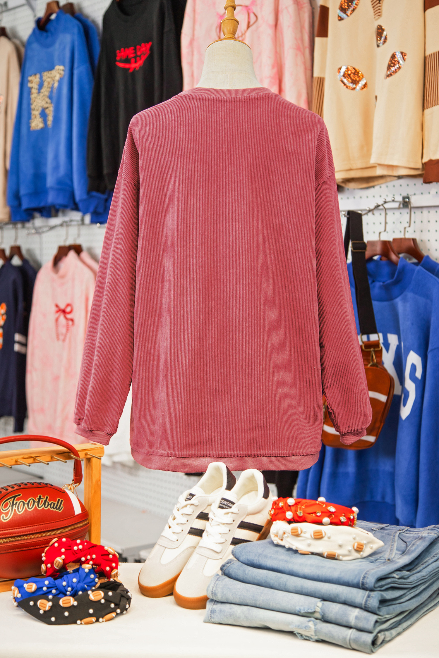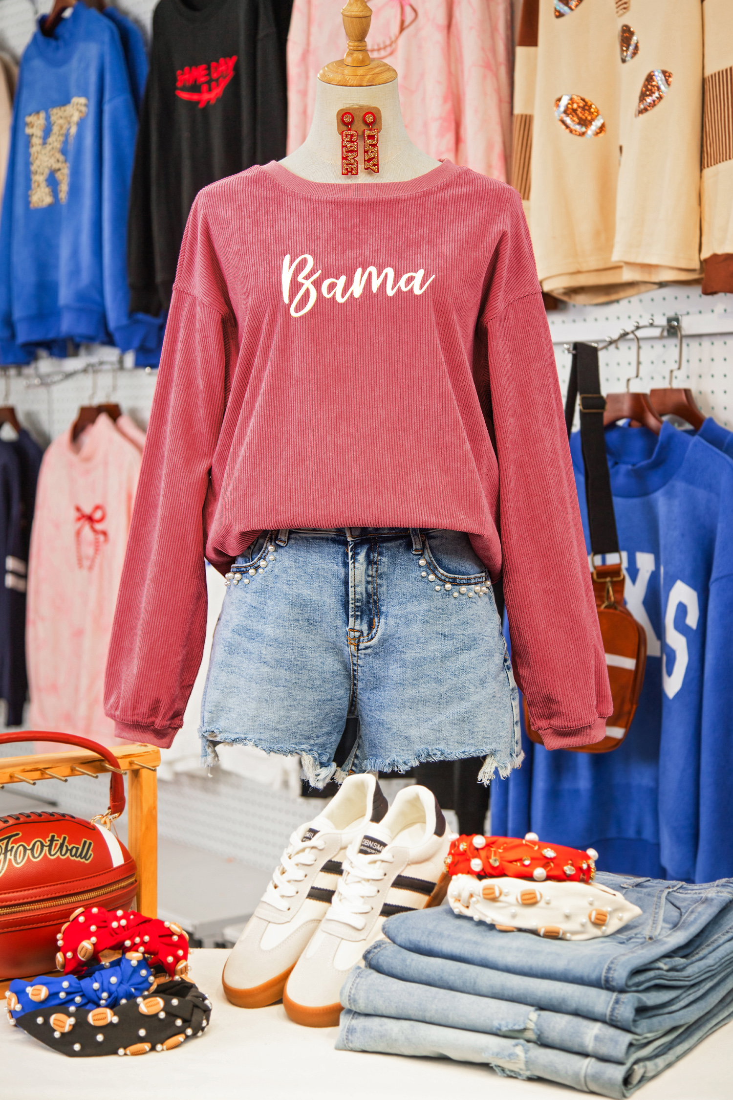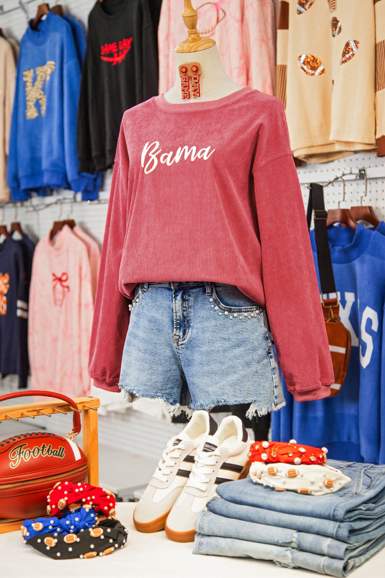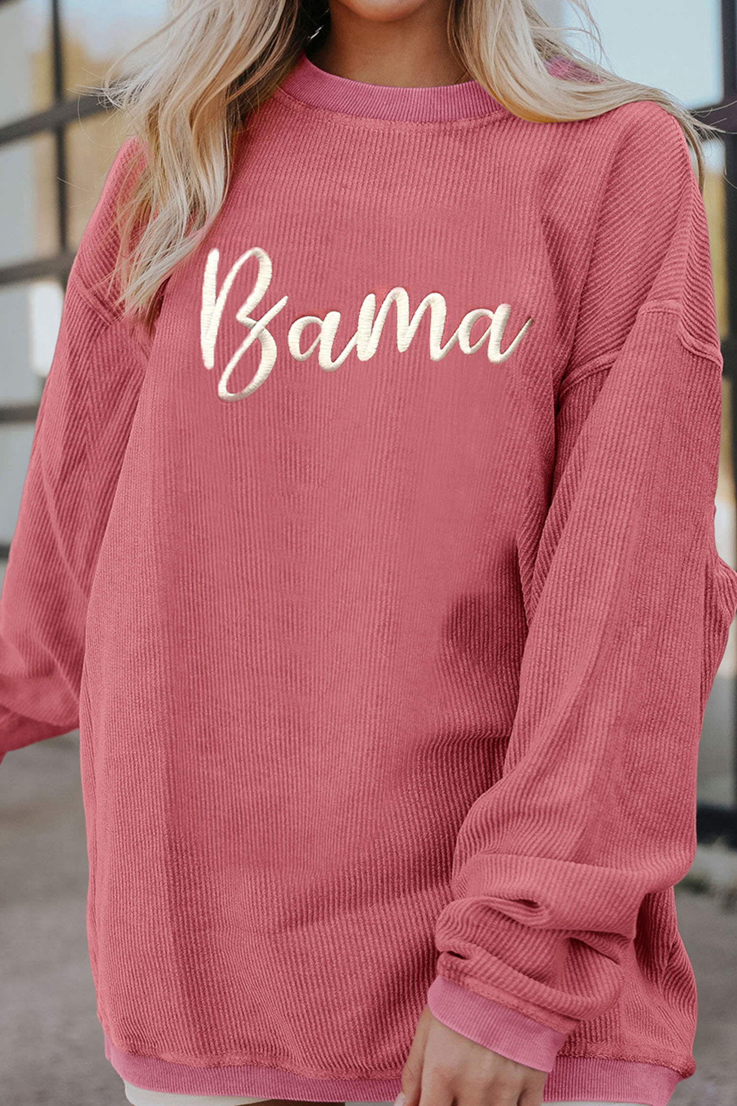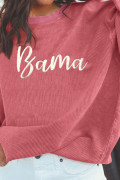 Sweat-shirt à côtes rose fraise avec inscription Bama brodée et logo brodé