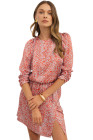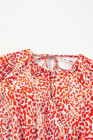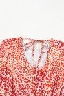Robe courte fendue à manches longues et dos creux à imprimé léopard rouge tomate