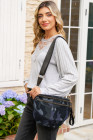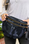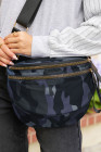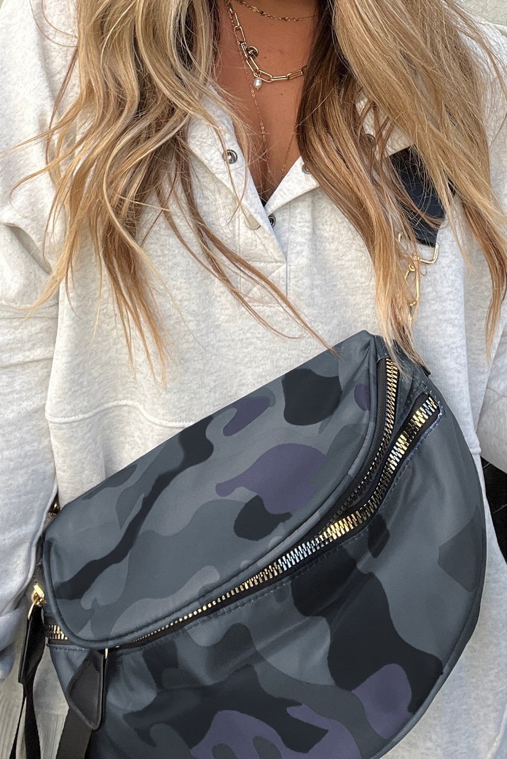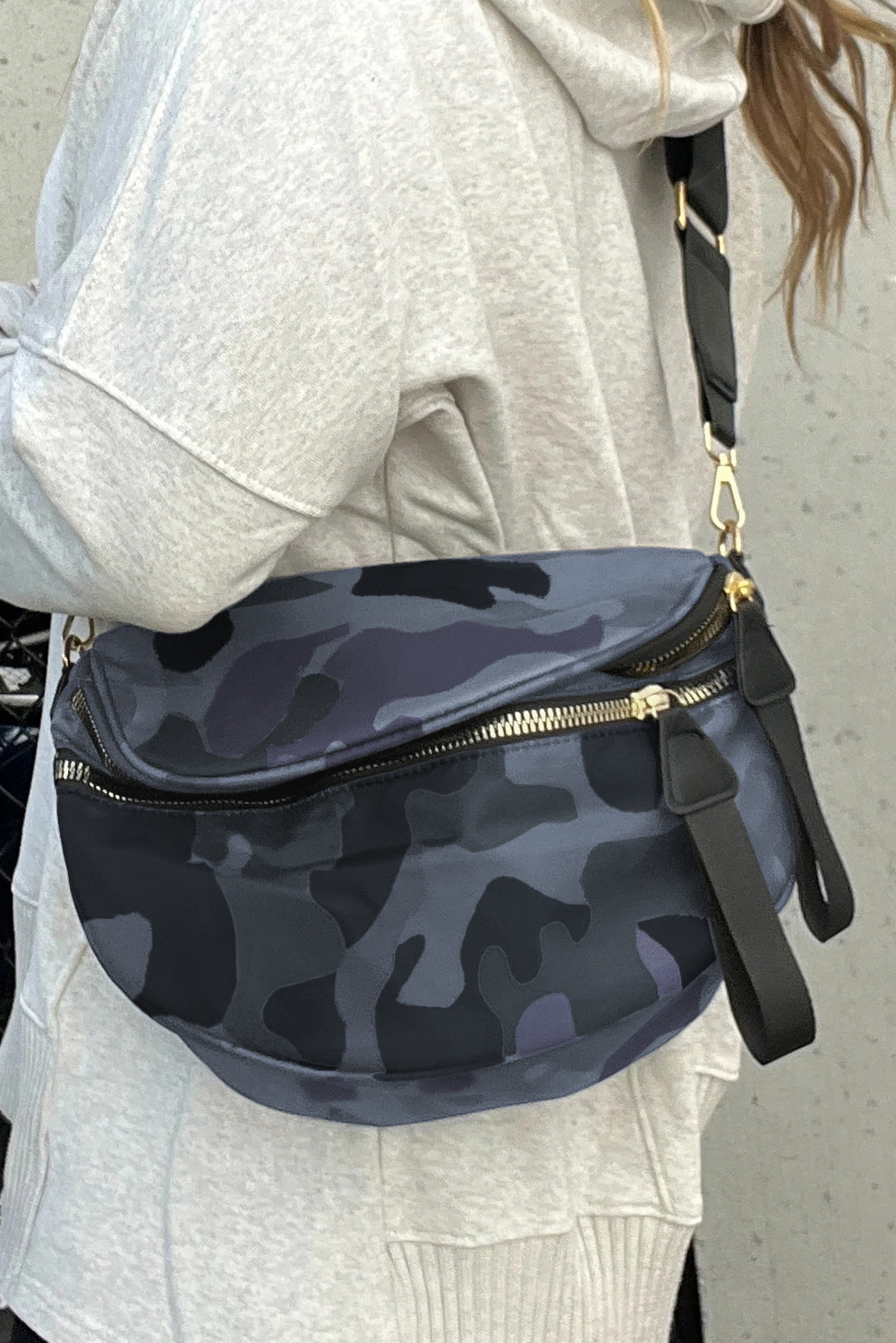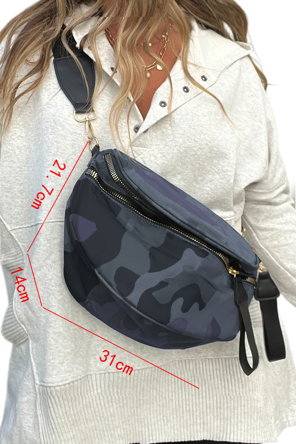 Sac bandoulière à double fermeture éclair et chaîne dorée à imprimé camouflage vert vignoble