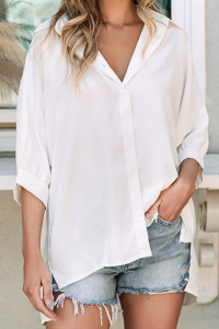 Chemise blanche oversize à manches 3/4 bouffantes
