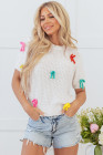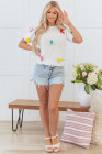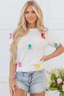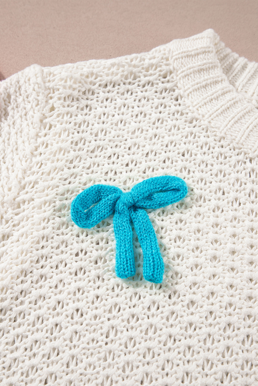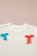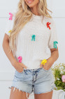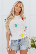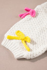 Pull à manches courtes et col montant en tricot à nœud coloré blanc