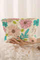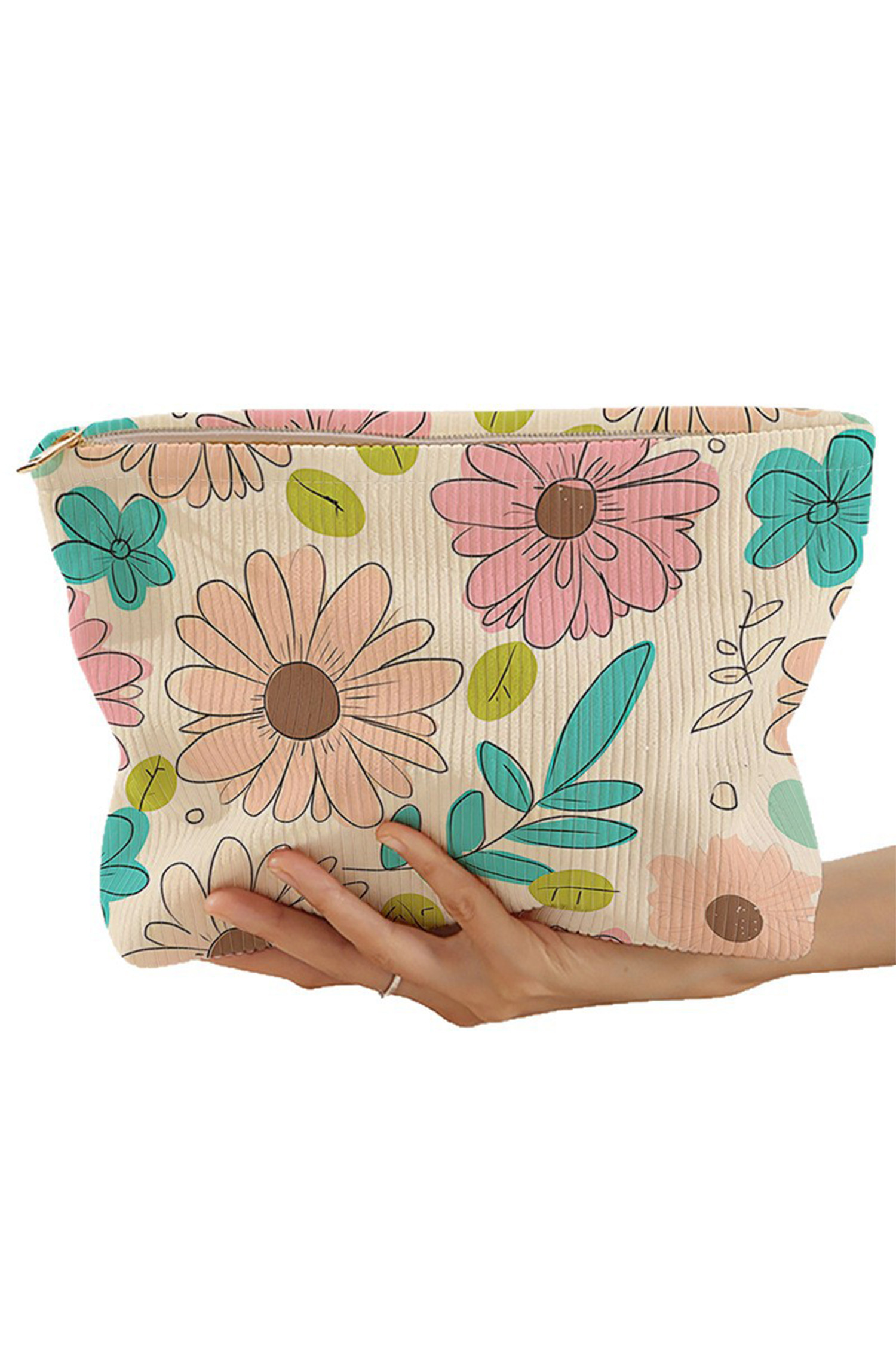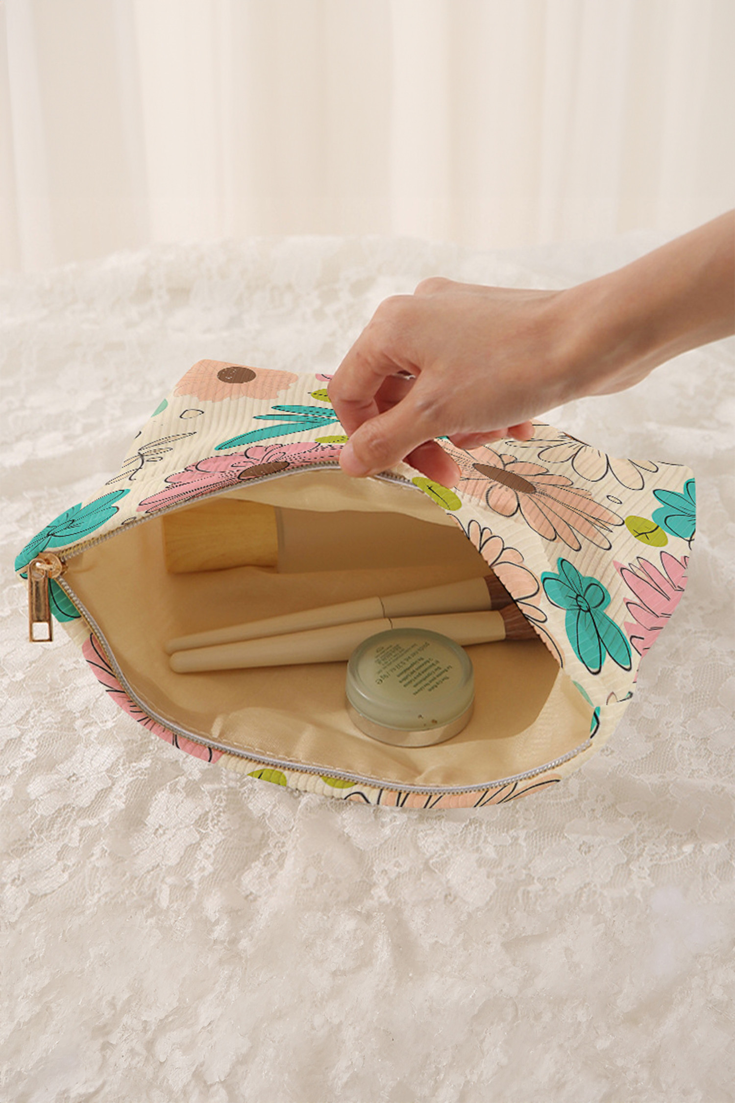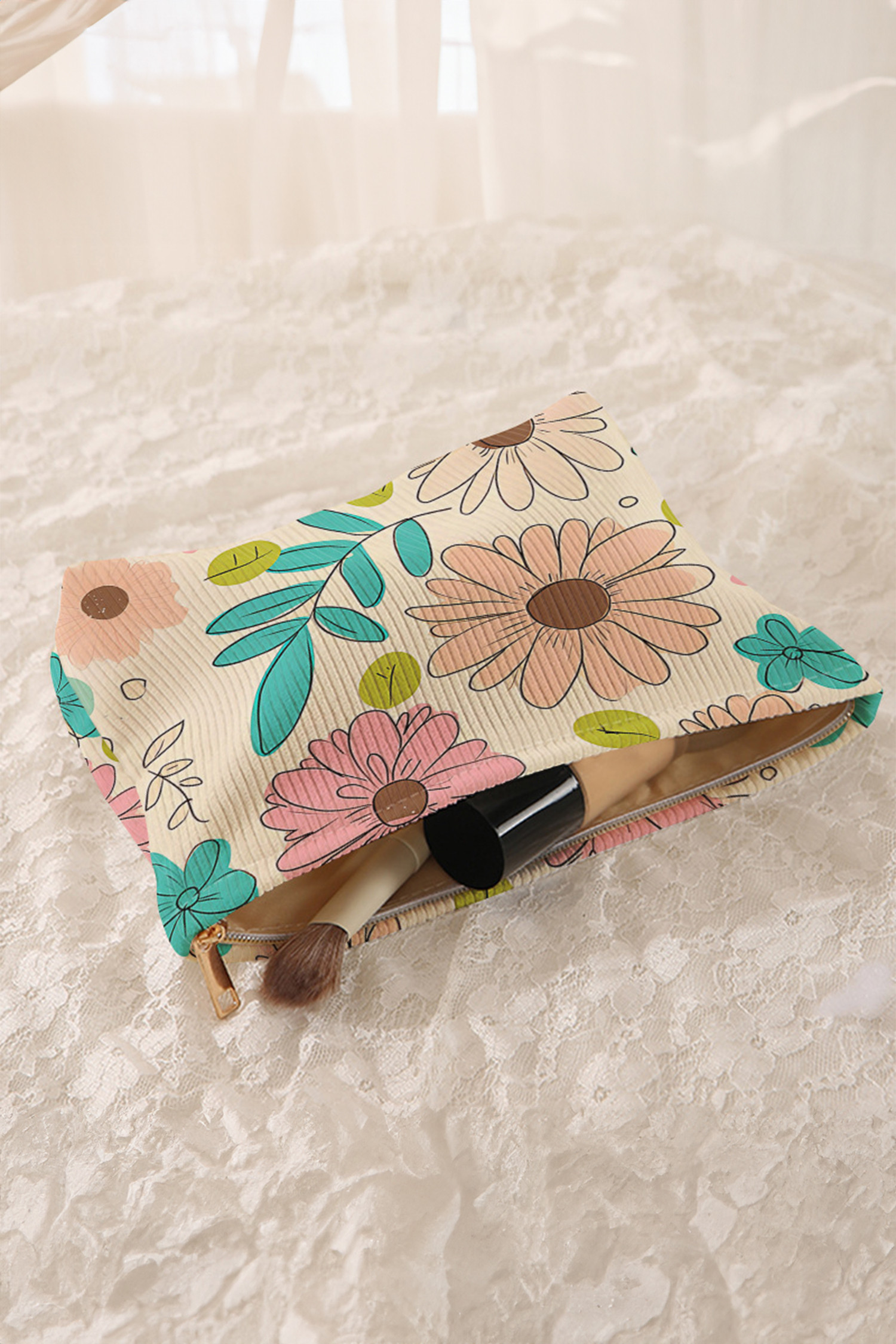 Trousse de maquillage en velours côtelé à imprimé floral blanc