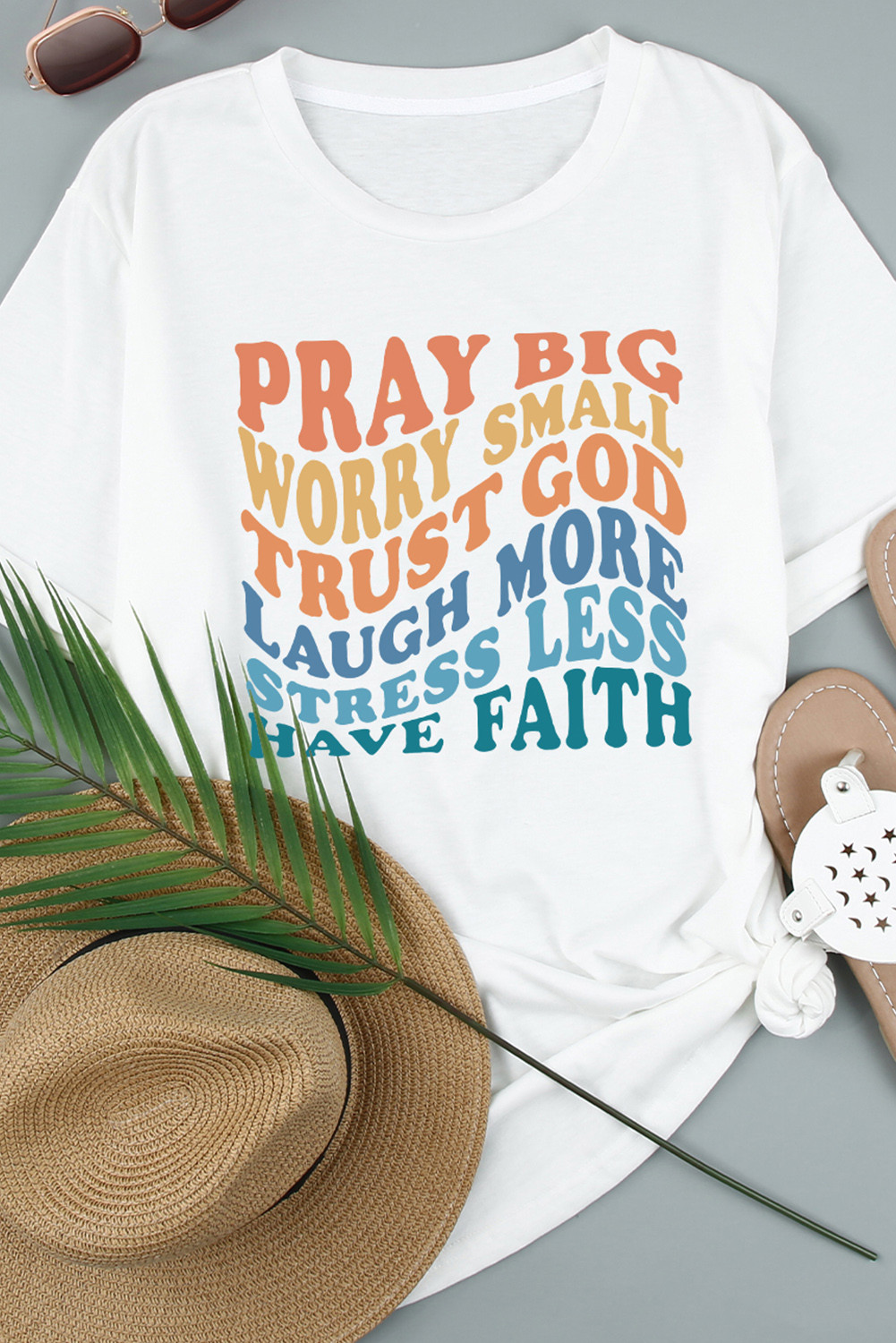 T-shirt blanc à imprimé de mots inspirés par la foi