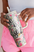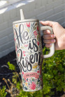Gobelet en acier inoxydable blanc avec imprimé floral He Is Risen de 40 oz