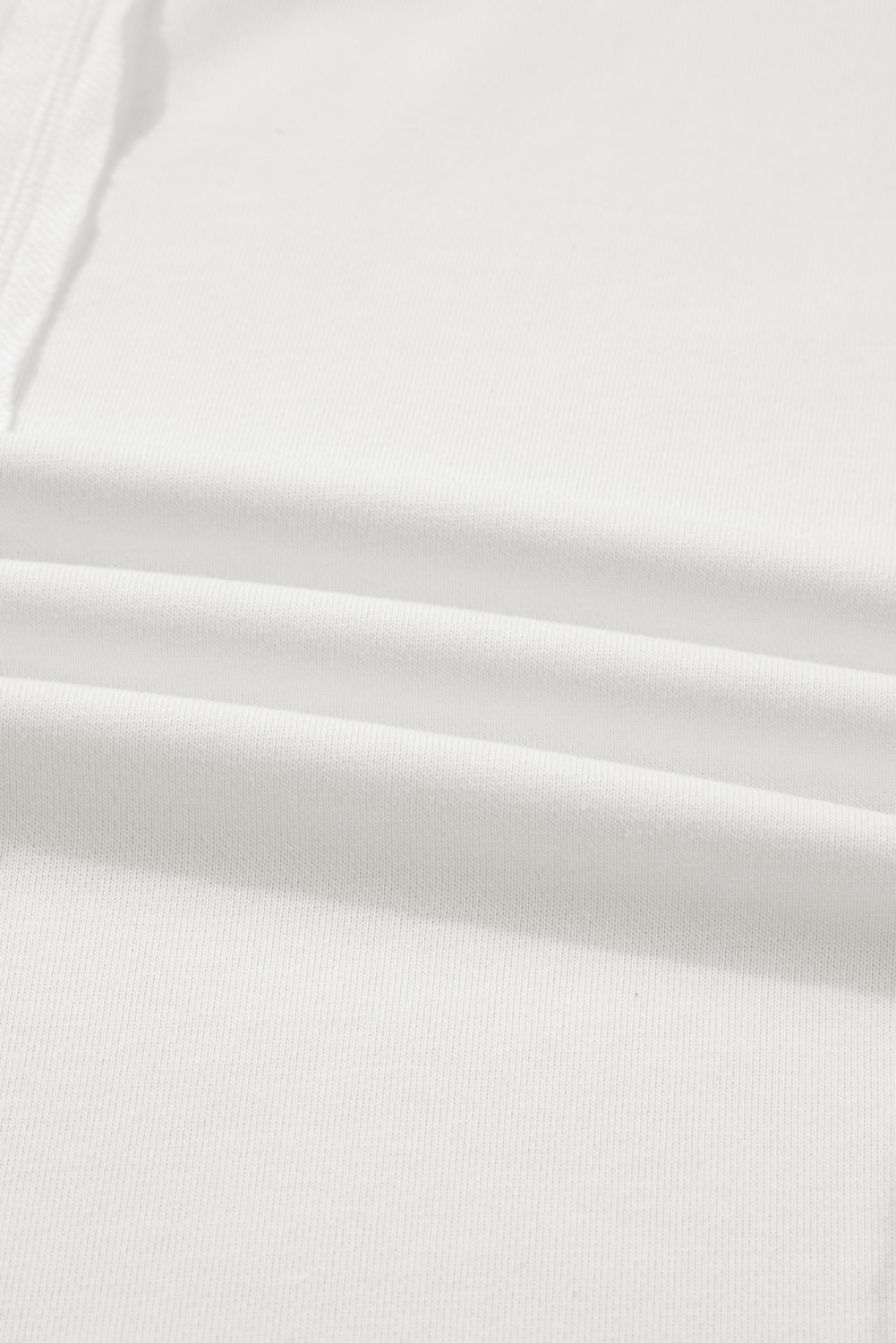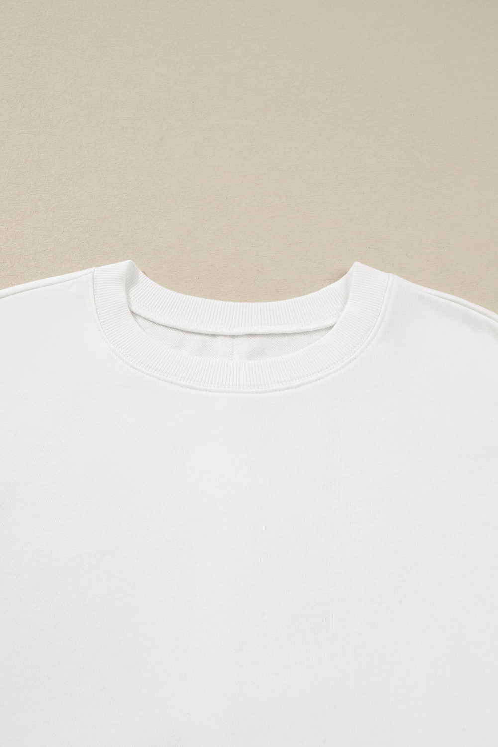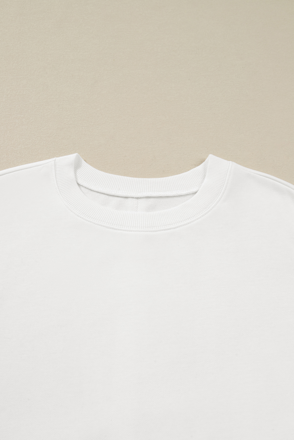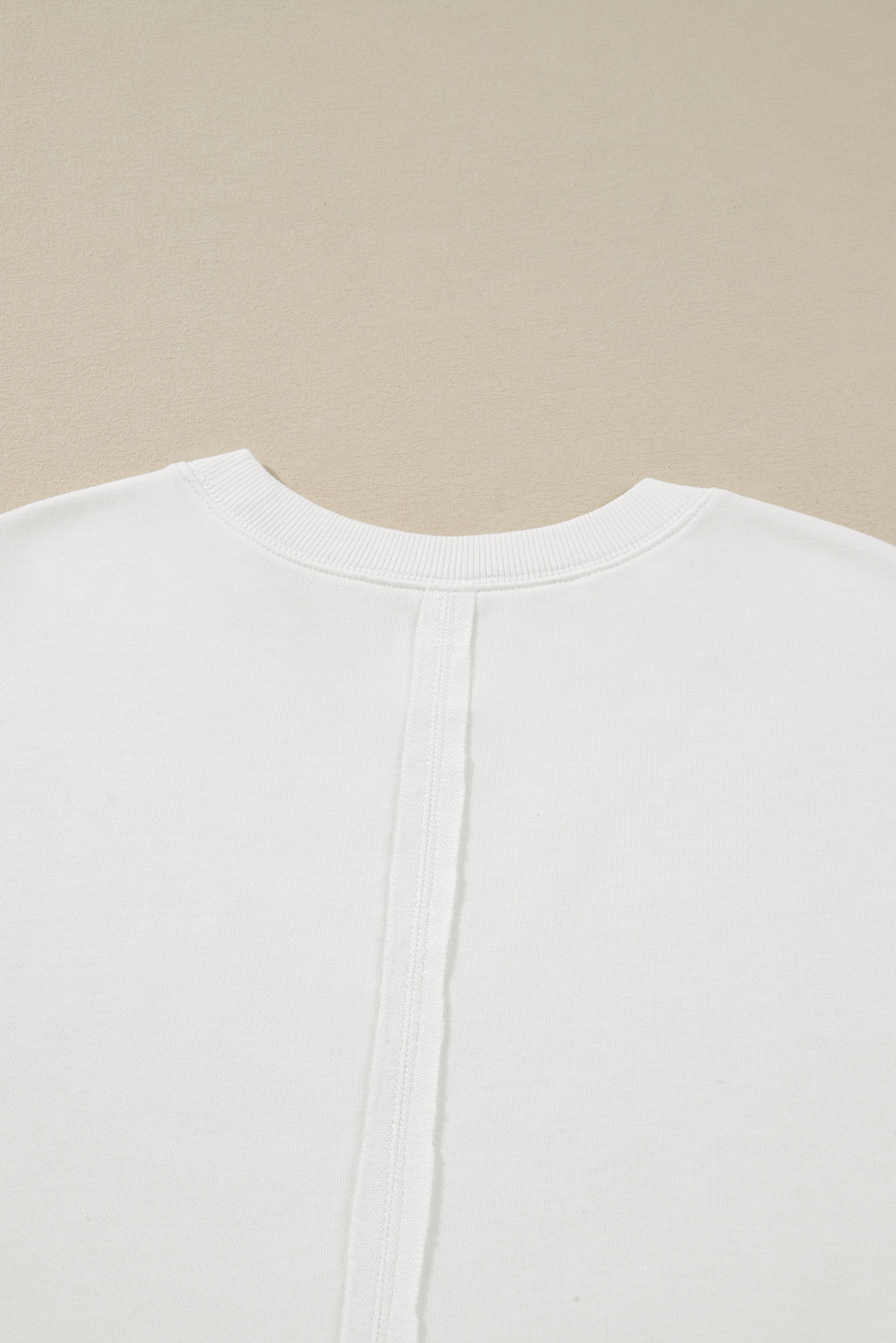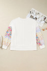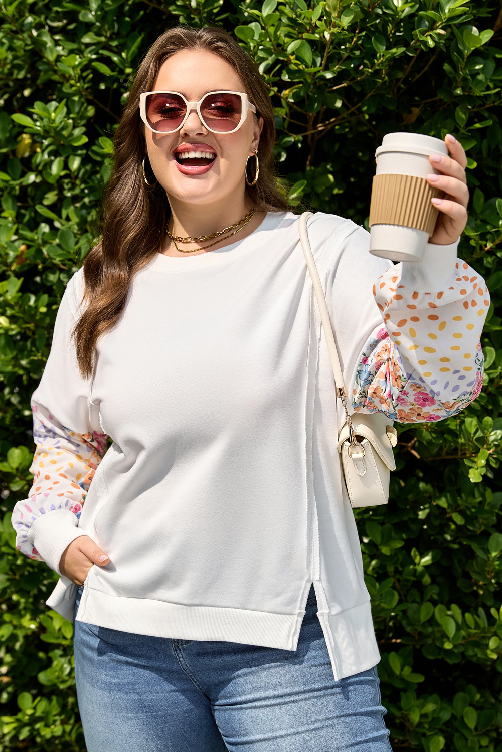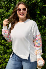 Sweat-shirt blanc grande taille à manches patchwork florales et pois contrastés avec coutures apparentes