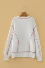 Pull ample à manches ballon et coutures arc-en-ciel blanches