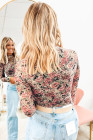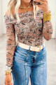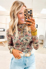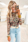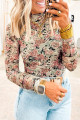 Haut à manches longues en maille à col montant et imprimé floral rétro blanc