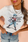 T-shirt graphique décontracté blanc SHOT CALLER WANNA BE A BALLER