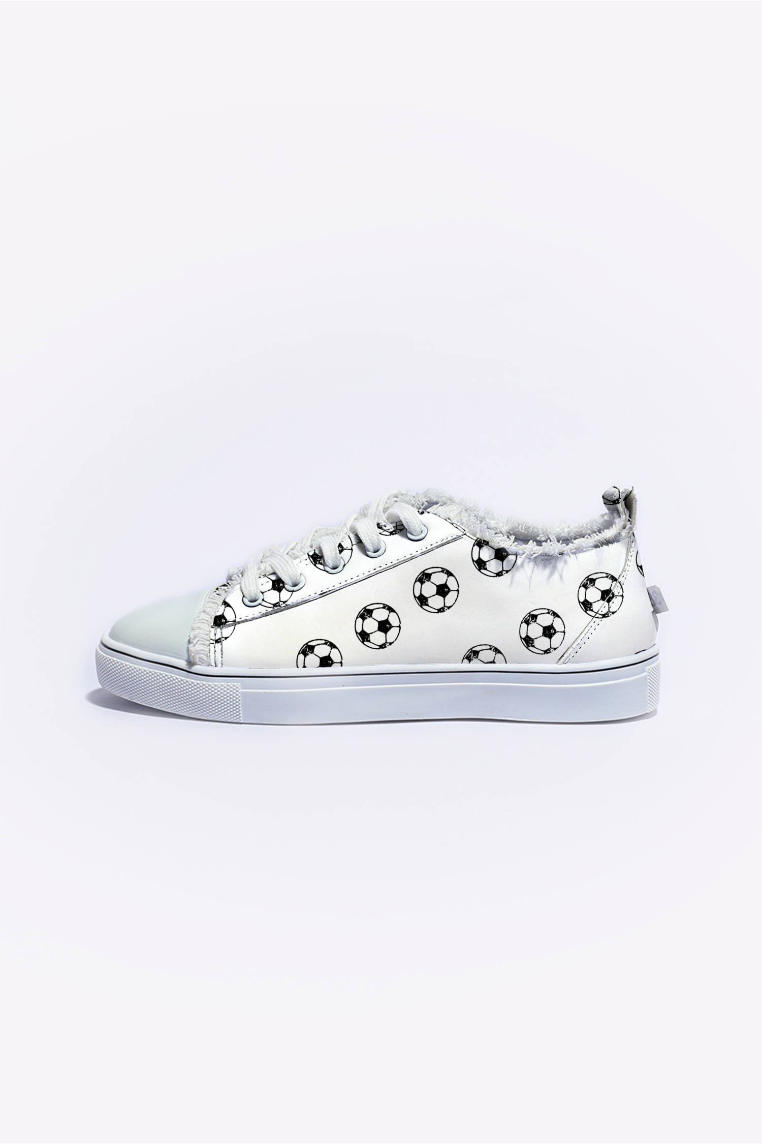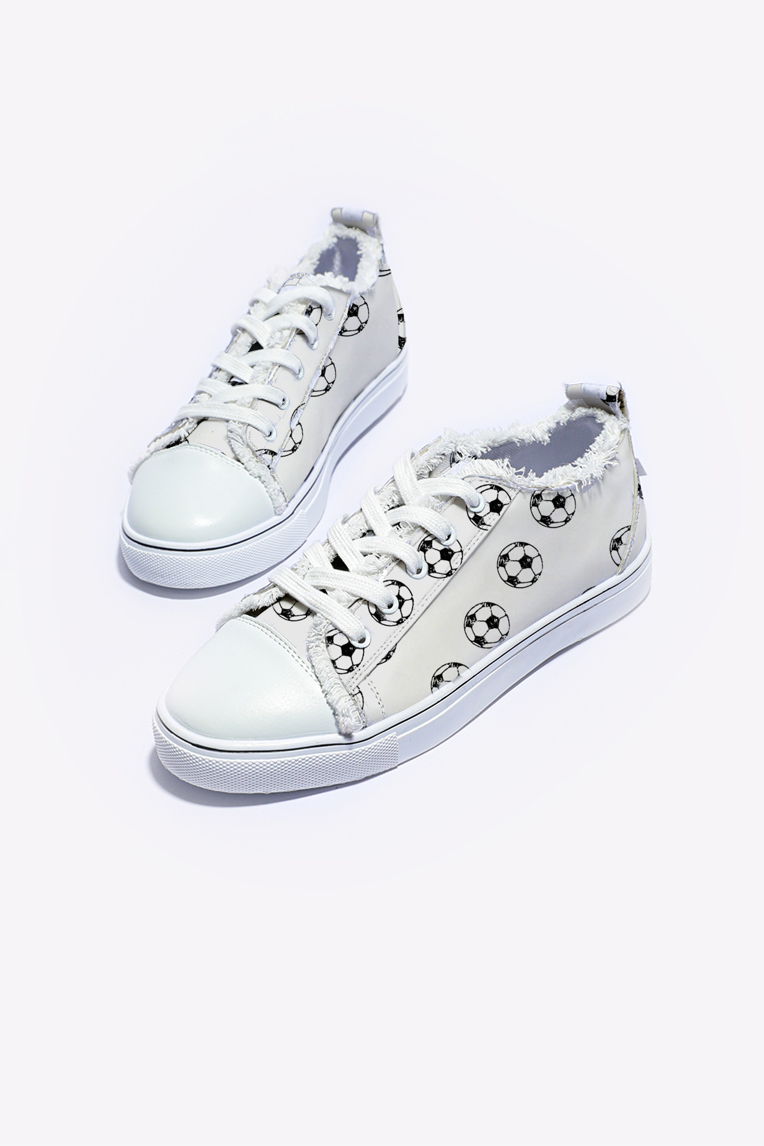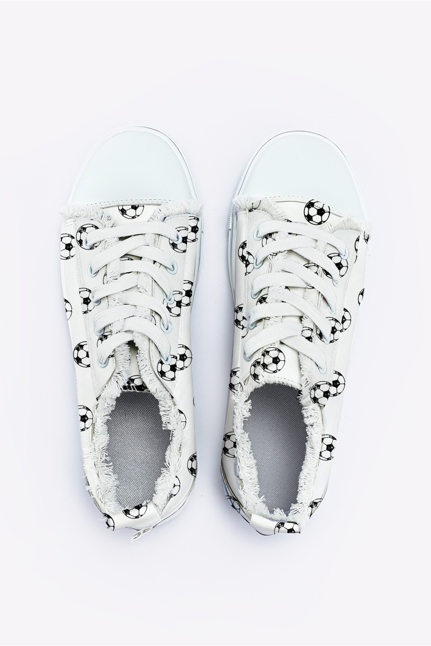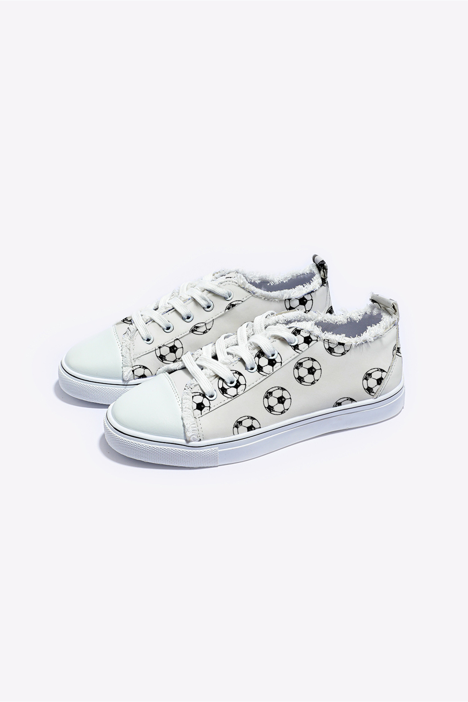 Chaussures de football blanches à lacets en toile effilochée avec imprimé football