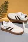 Baskets plates blanches en cuir PU texturé tissé à motif léopard