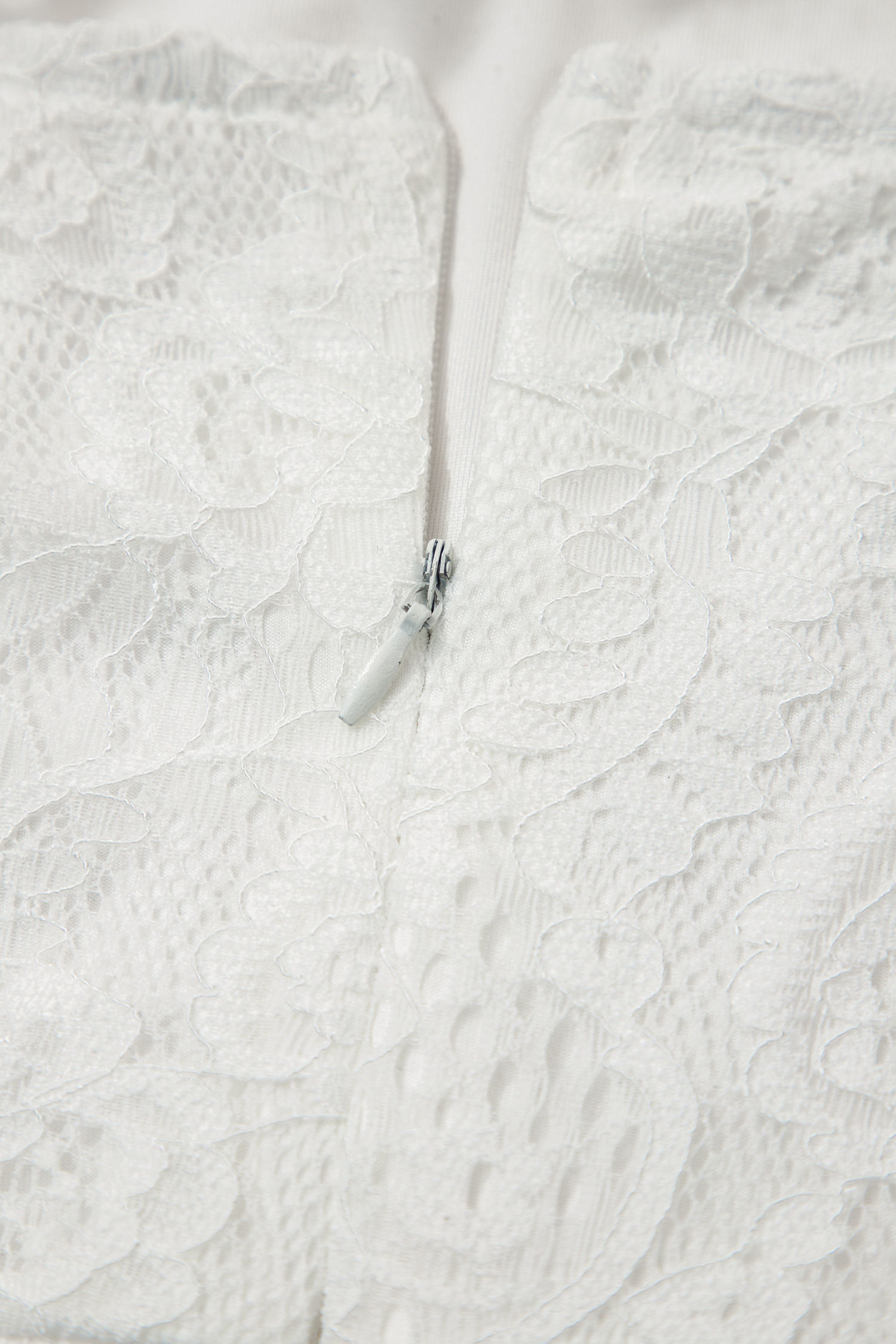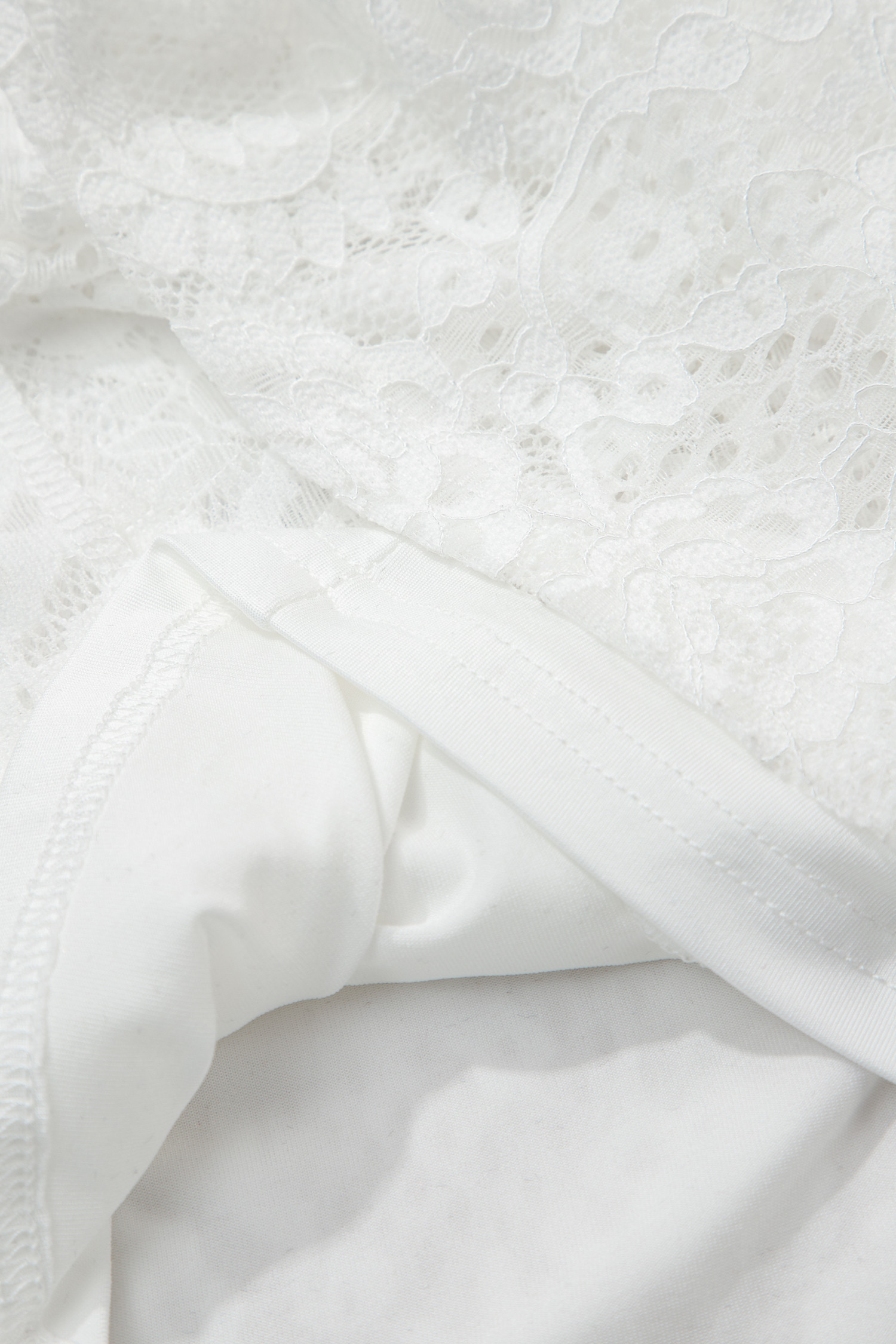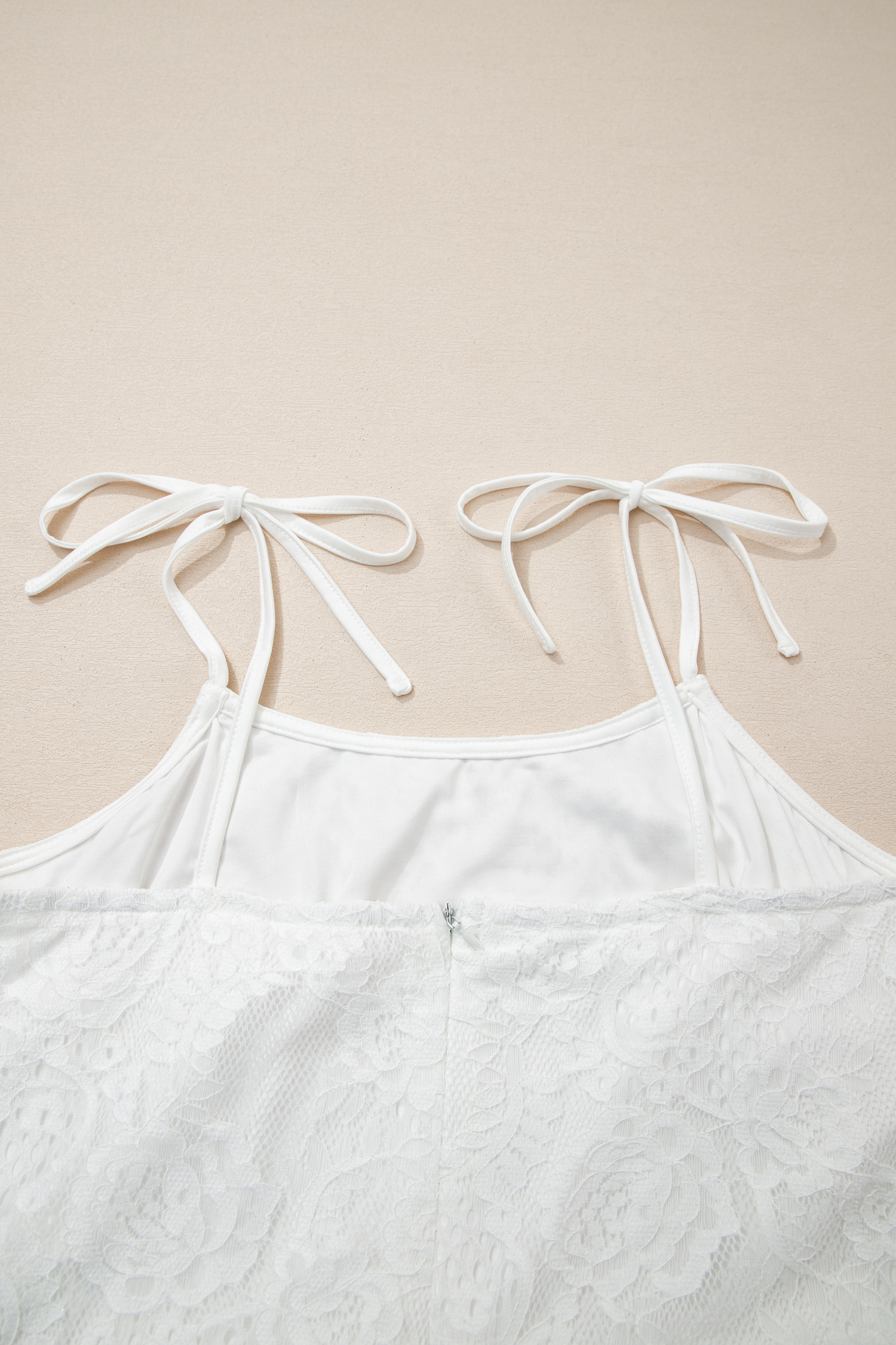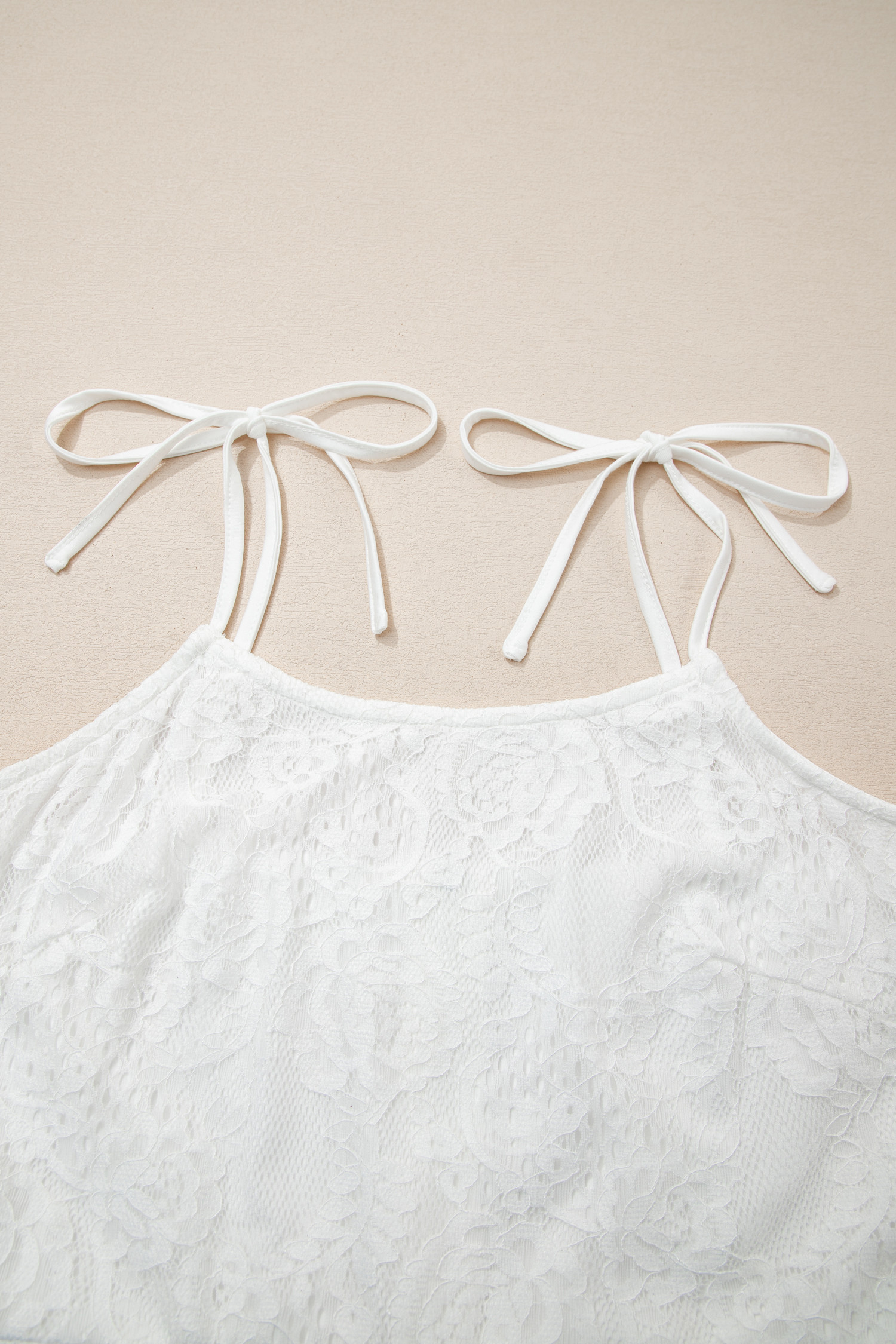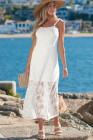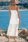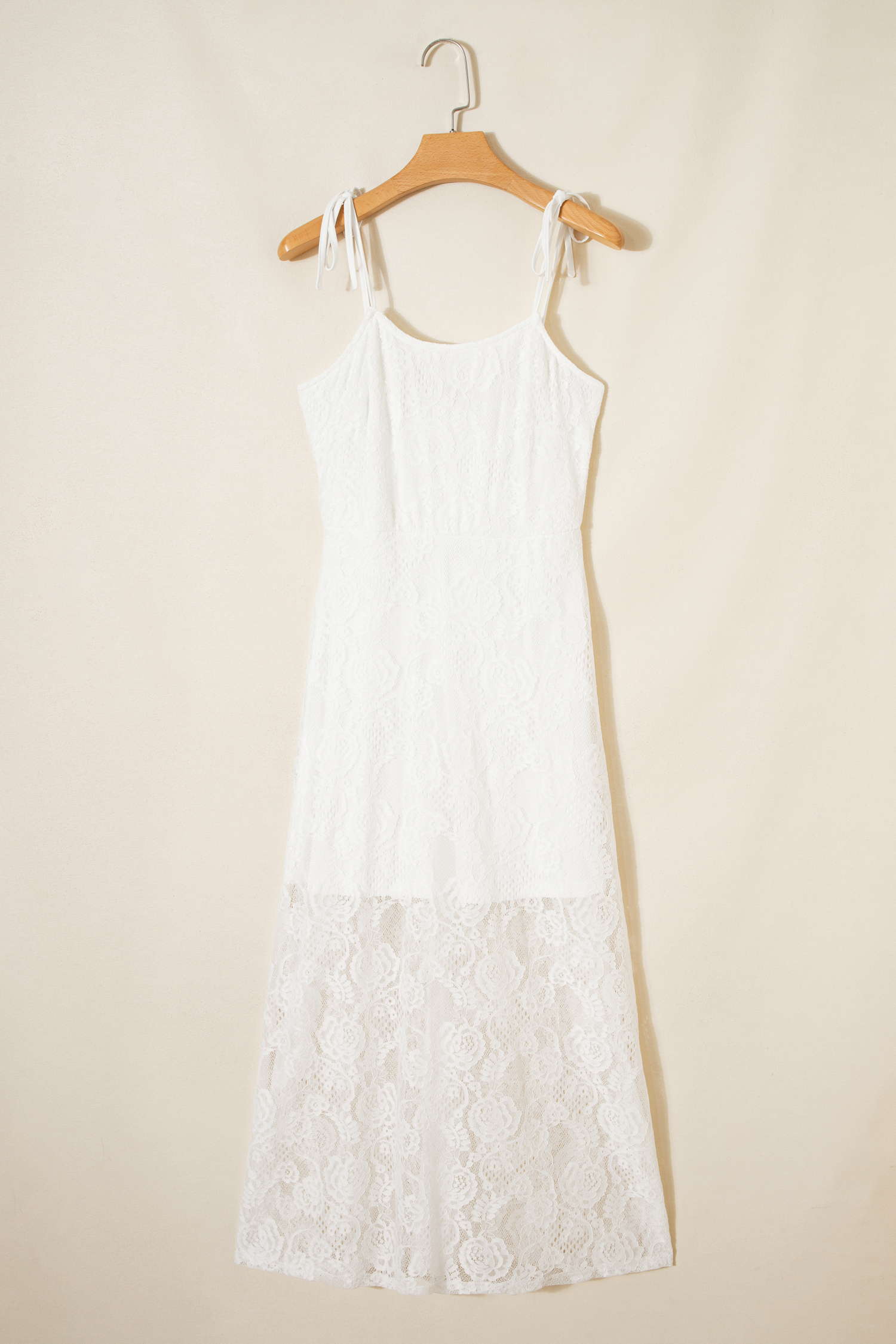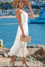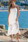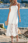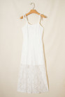 Robe longue blanche à fines bretelles et dentelle florale