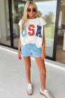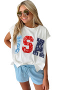 T-shirt Dolman blanc imprimé USA en blocs de couleur