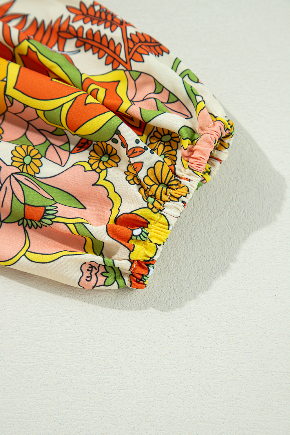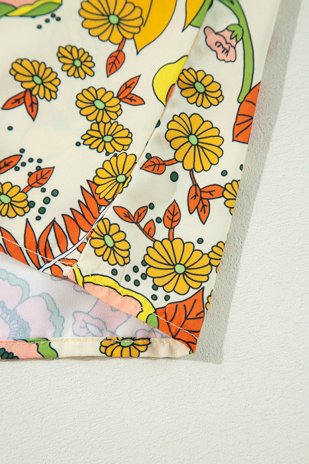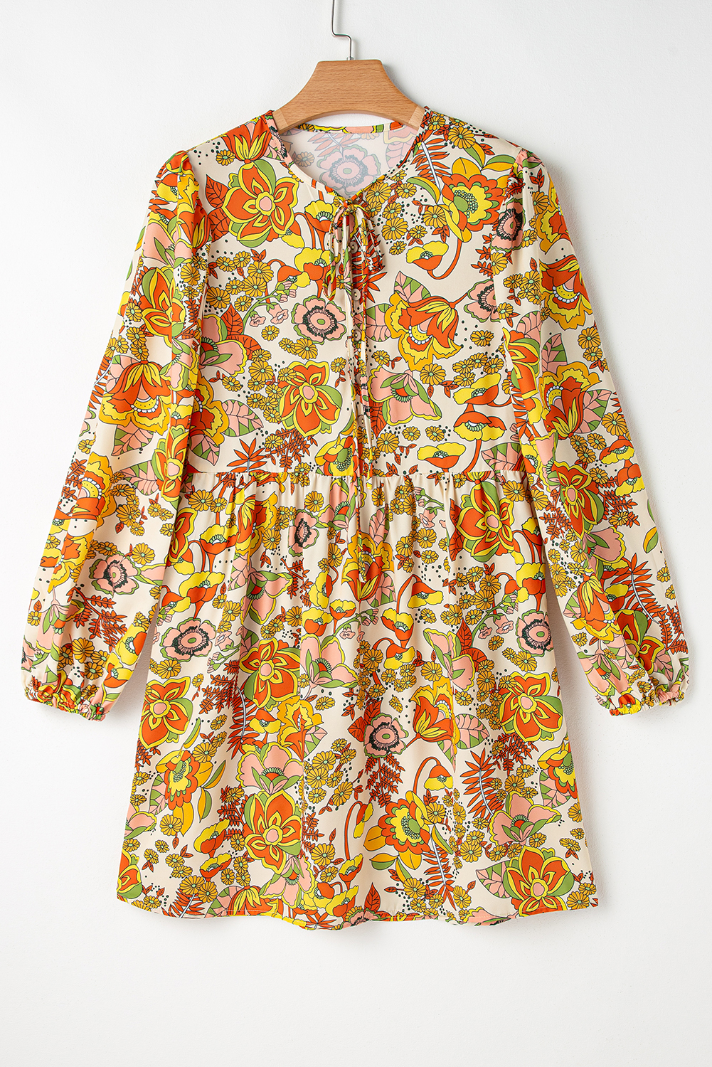 Mini-robe à imprimé floral jaune crème à manches bouffantes et col en V